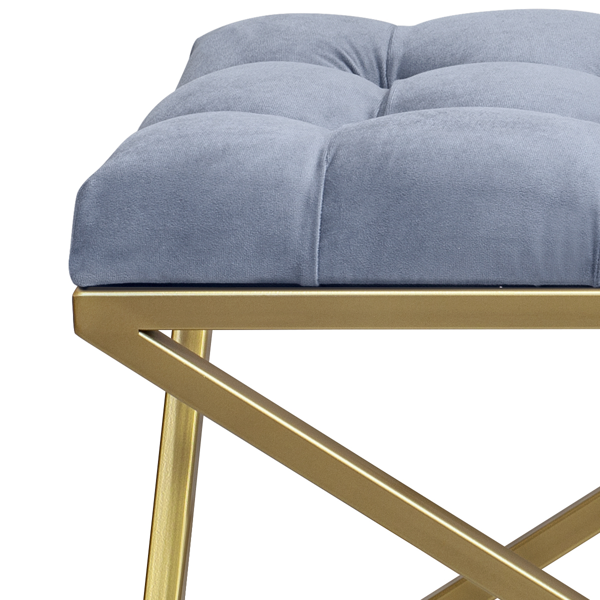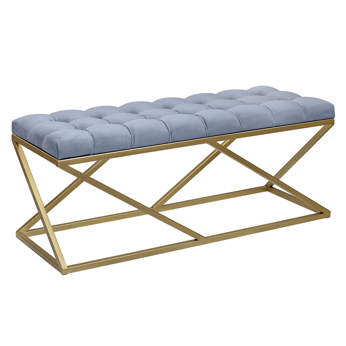 Банкетка ZUMA — элегантное решение для вашего интерьера. Основание из золотистой стали и мягкое сиденье из велюра создают гармоничный образ.