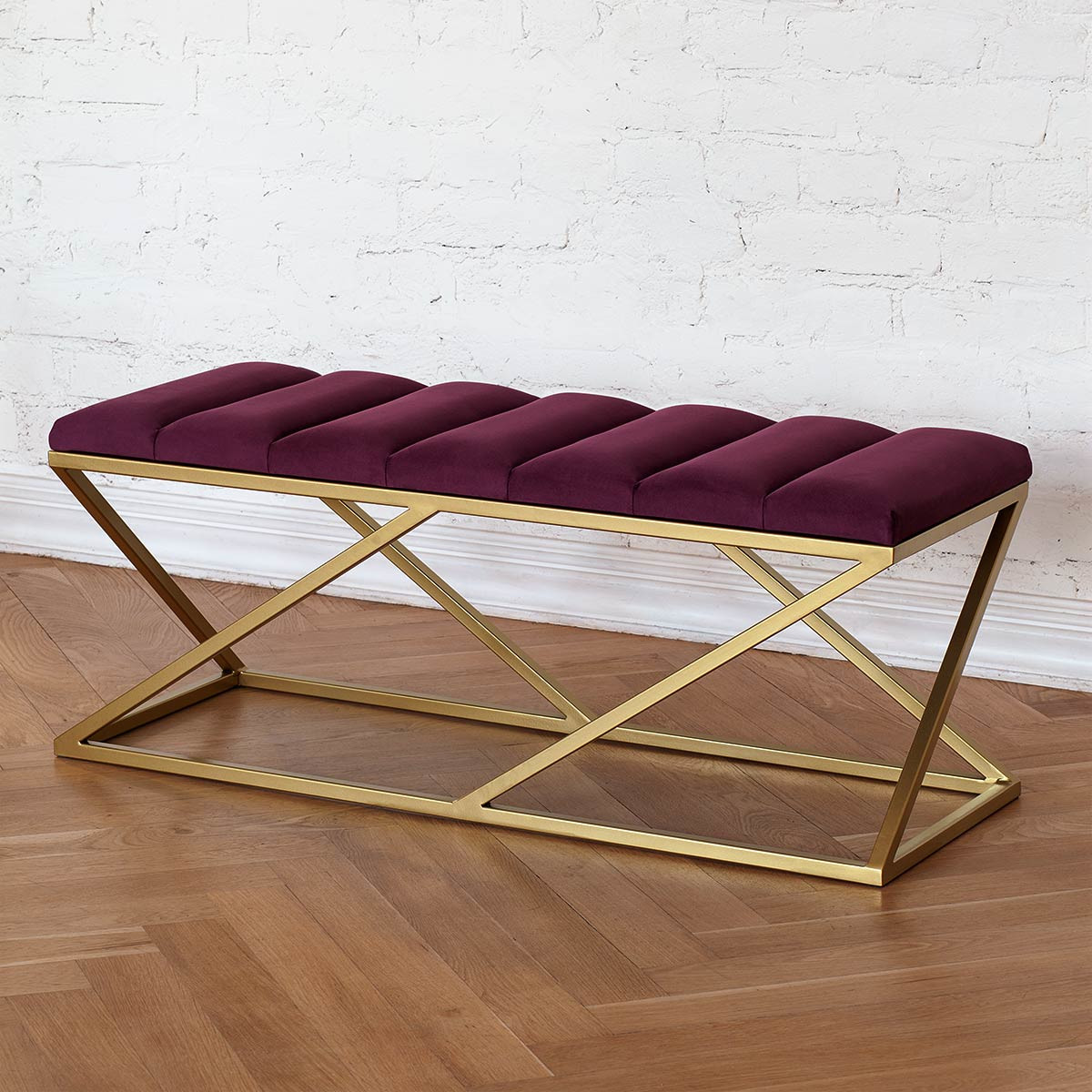 Банкетка ZUMA — элегантное решение для вашего интерьера. Основание из золотистой стали и мягкое сиденье из велюра создают гармоничный образ.