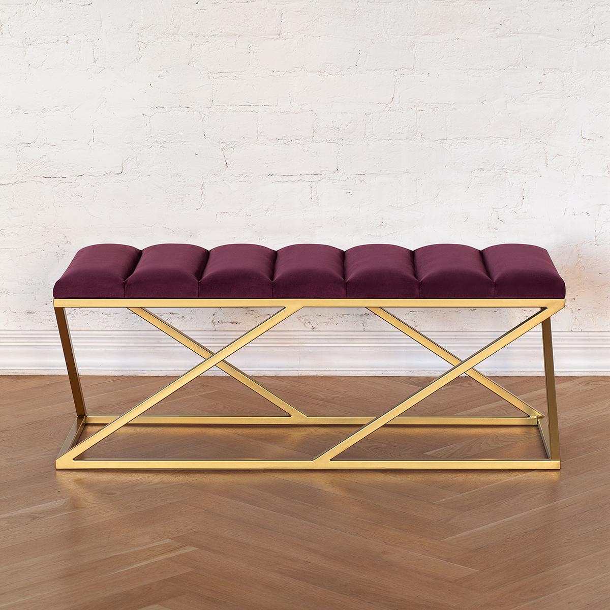 Банкетка ZUMA — это сочетание элегантности и комфорта. Золотистое основание и мягкая велюровая подушка в стяжке Bulon создают изысканный образ.