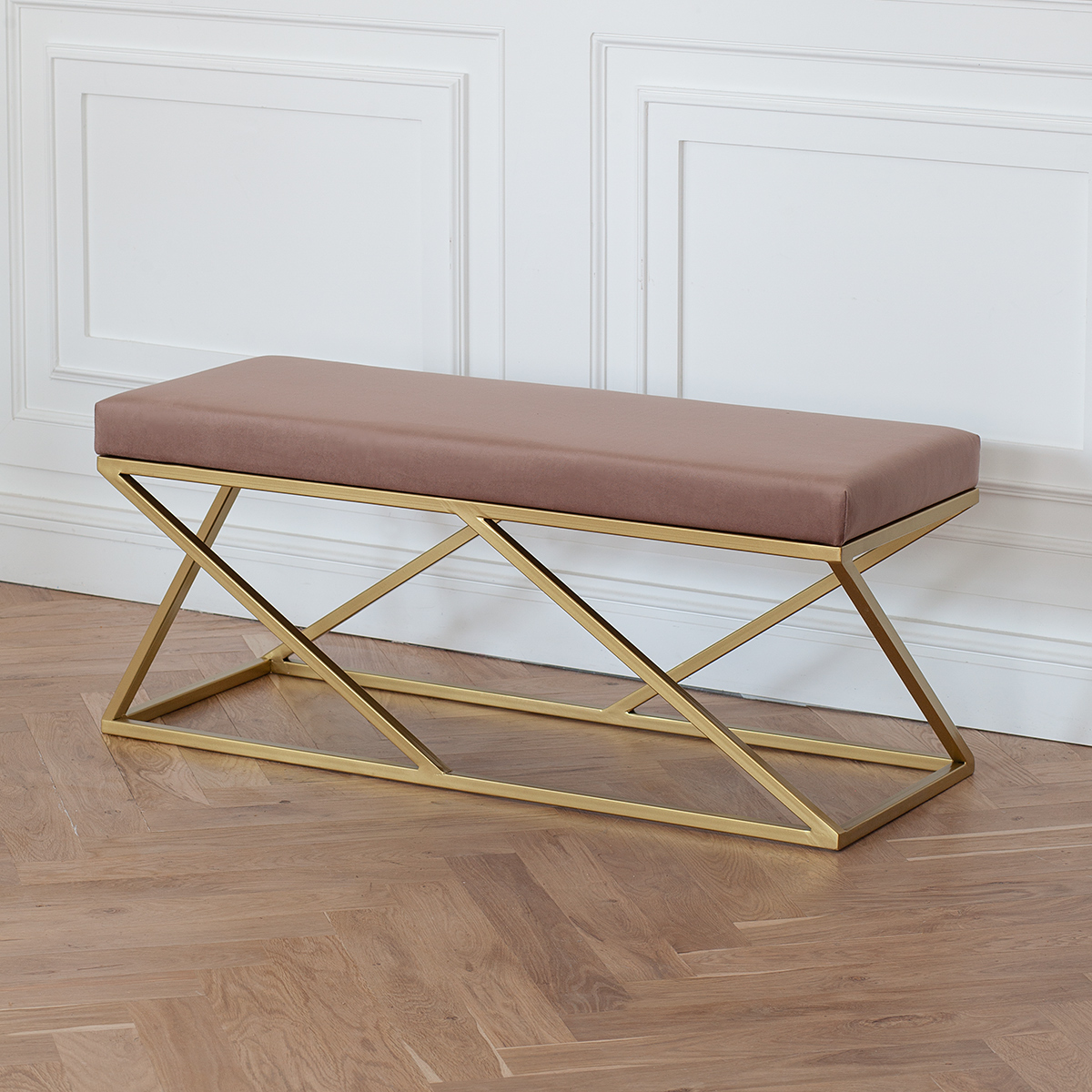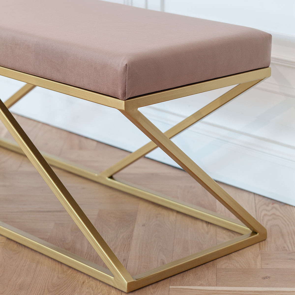 Банкетка ZUMA — это сочетание элегантности и комфорта. Золотистое основание и мягкая велюровая подушка создают изысканный образ.