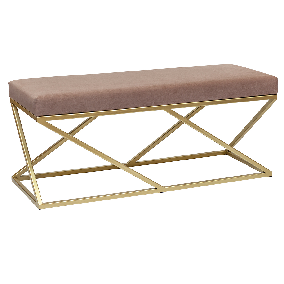 Банкетка ZUMA — элегантное решение для вашего интерьера. Основание из золотистой стали и мягкое сиденье из велюра создают гармоничный образ.