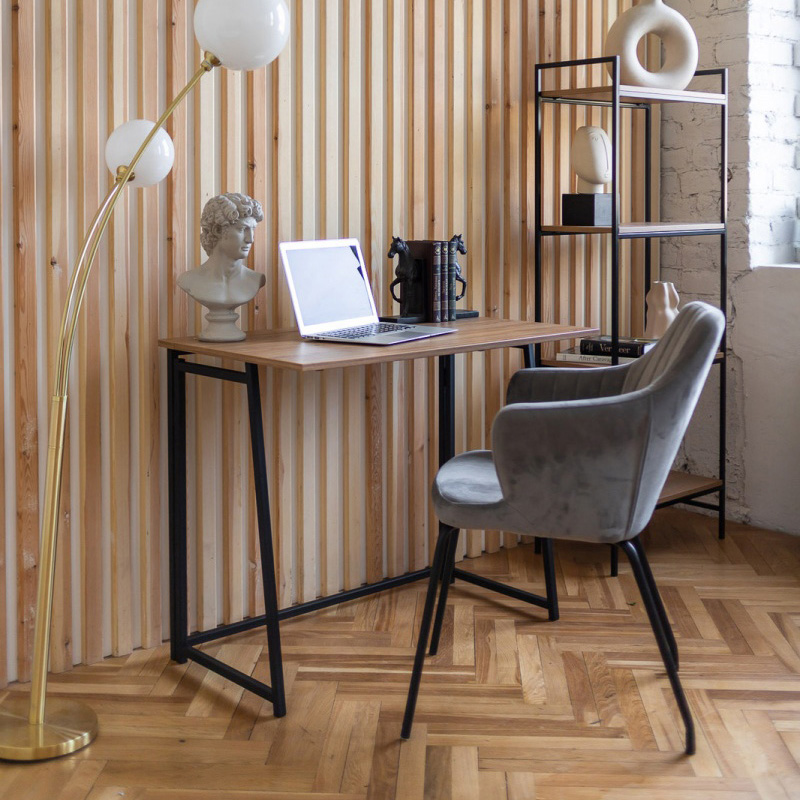 SKANDY — компактный, удобный и стильный рабочий стол для ценителей минимализма с черным подстольем. Стол идеально подойдет для помещения любой площади, ведь при необходимости его можно сложить!
