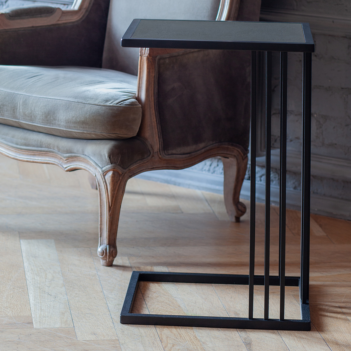 Черный приставной столик SOHO с металлическим каркасом и столешницей из керамогранита.