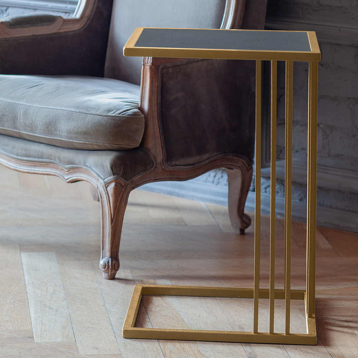 Золотой приставной столик SOHO с металлическим каркасом и столешницей из керамогранита.