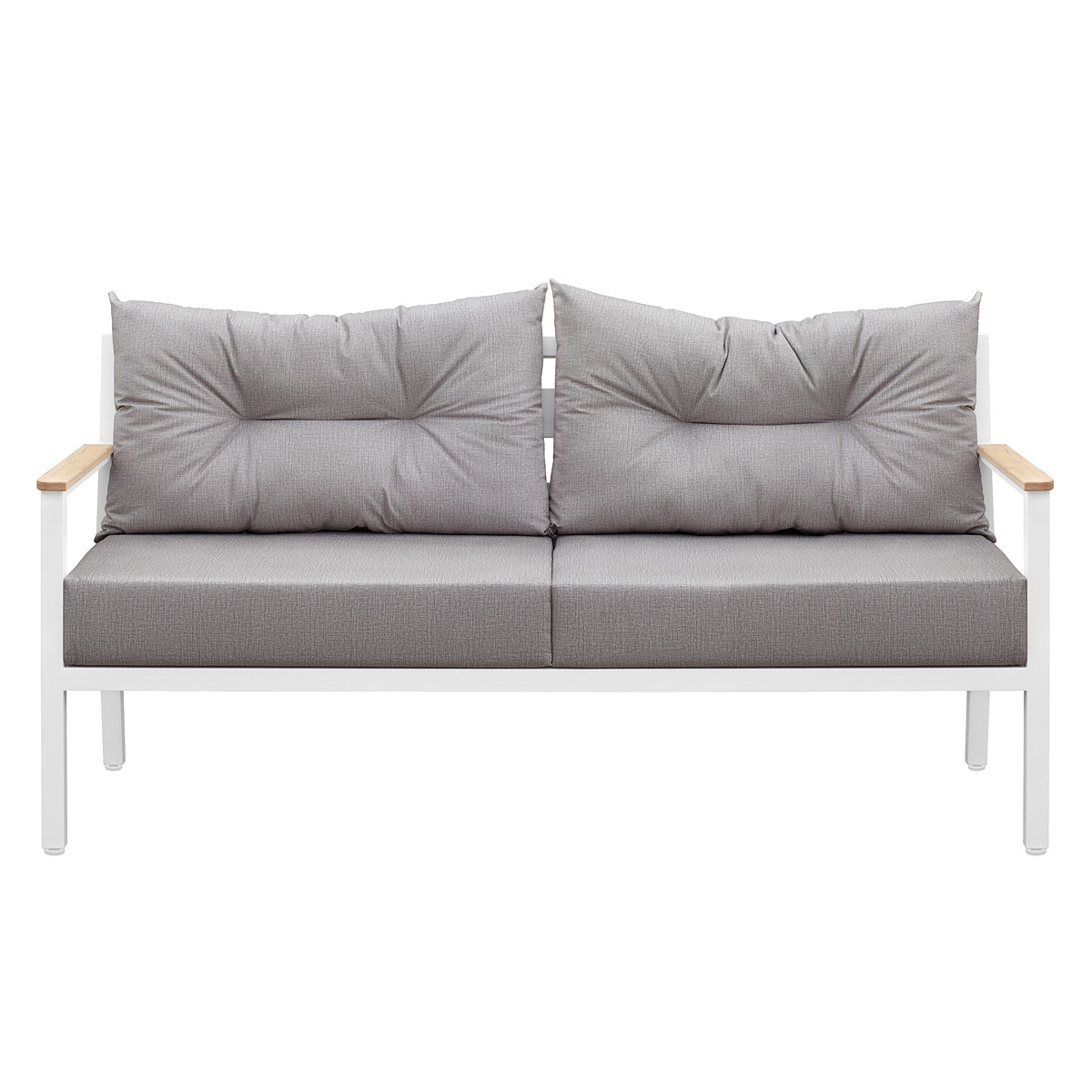 Диван уличный SANTORINI, каркас алюминий цвет белый, подушки рогожка цвет светло-серый, подлокотники дерево, 1800х820х870, GW-AL-SANT-SOFA-1800W