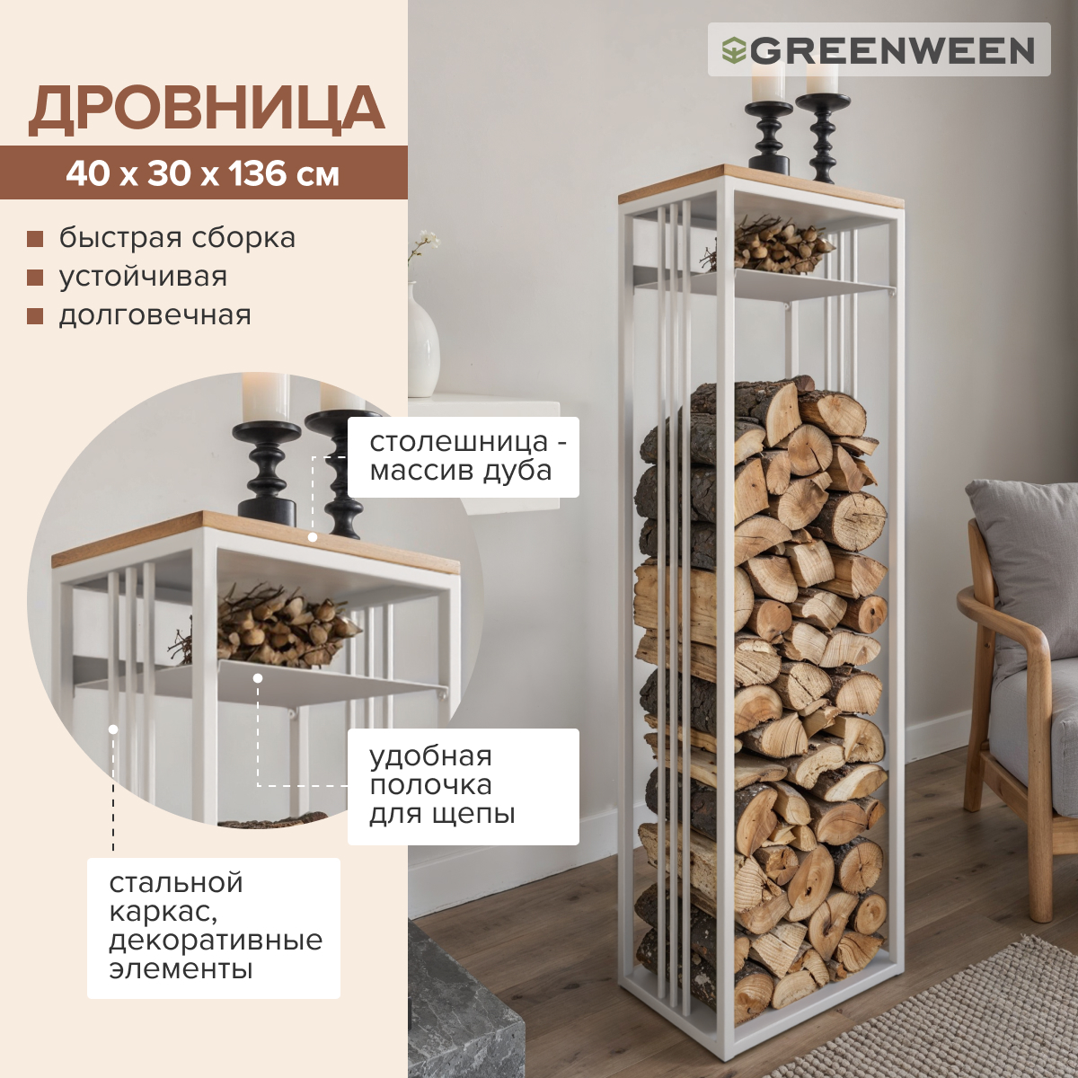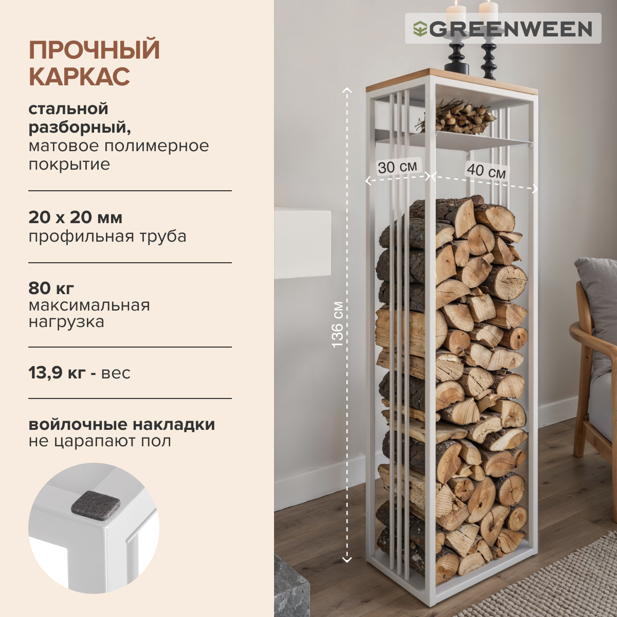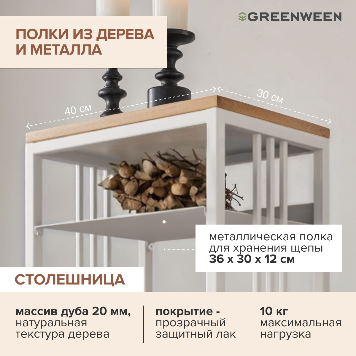 Дровница CAPRI с полкой, разборная, белый цвет, столешница дерево, 400x300x1360, GW-DR-CAPRI-W-WOOD