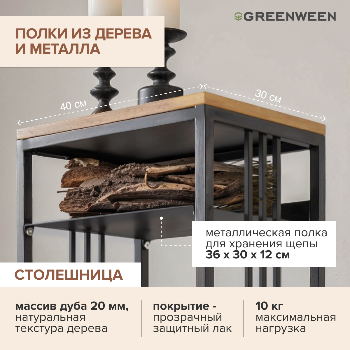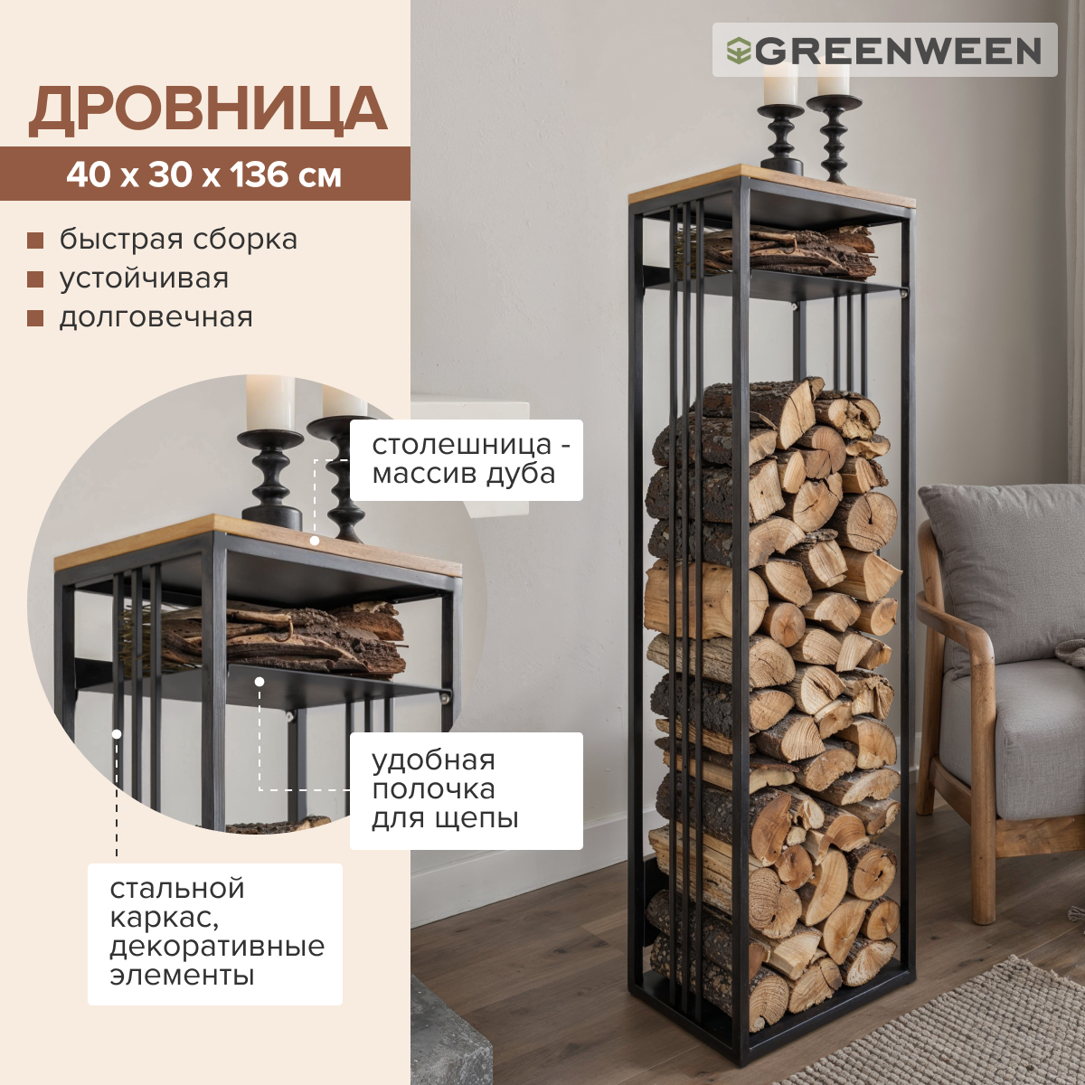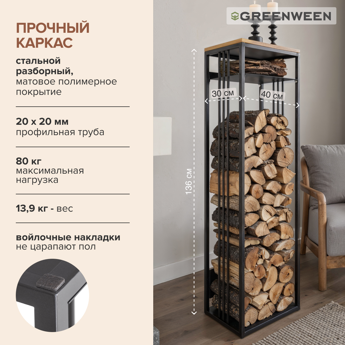 Дровница CAPRI с полкой, разборная, черный цвет, столешница дерево, 400x300x1360, GW-DR-CAPRI-B-WOOD