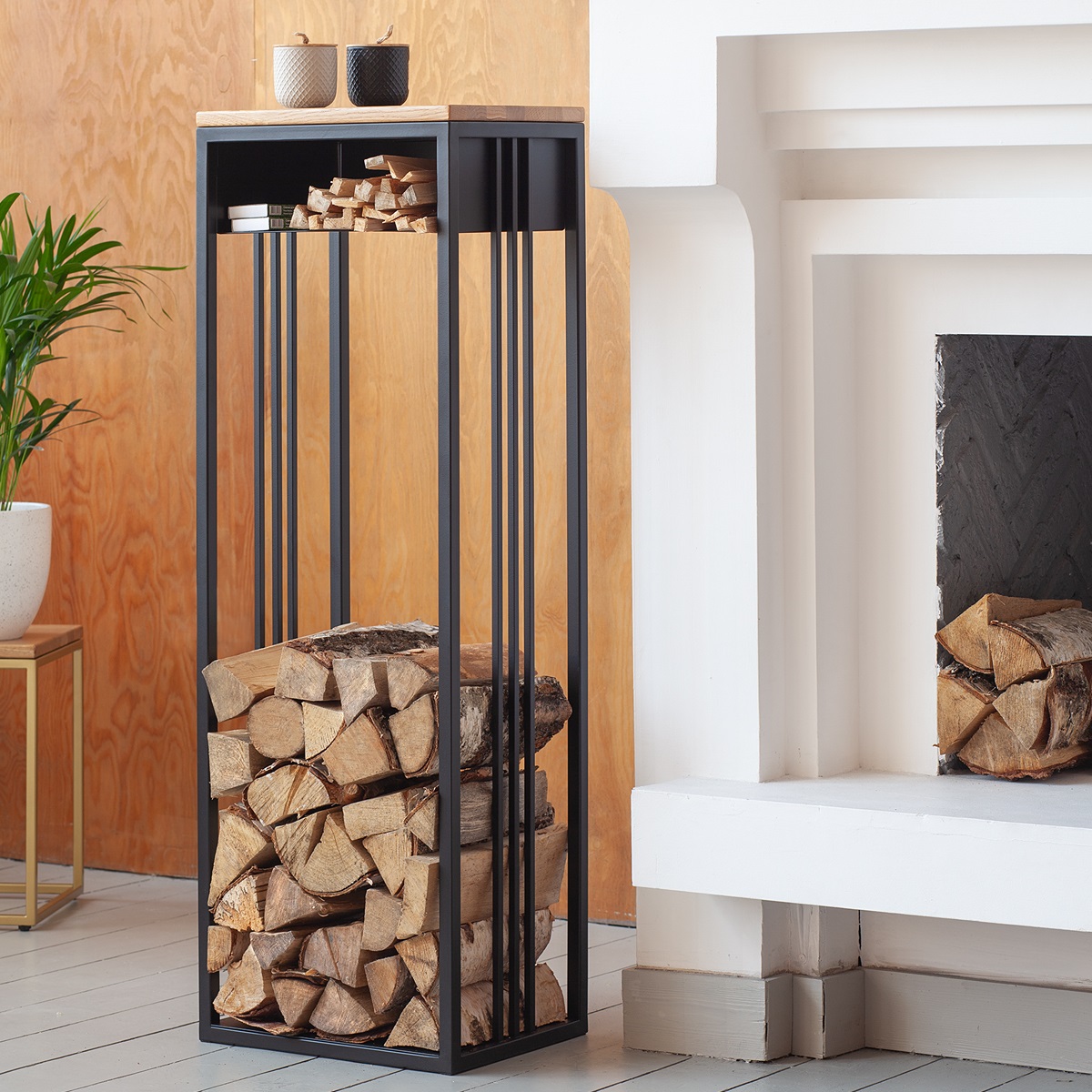 Высокую дровницу можно использовать как декоративный элемент дизайна, стильный предмет мебели дополнит современный интерьер в стиле лофт, минимализм, сканди.