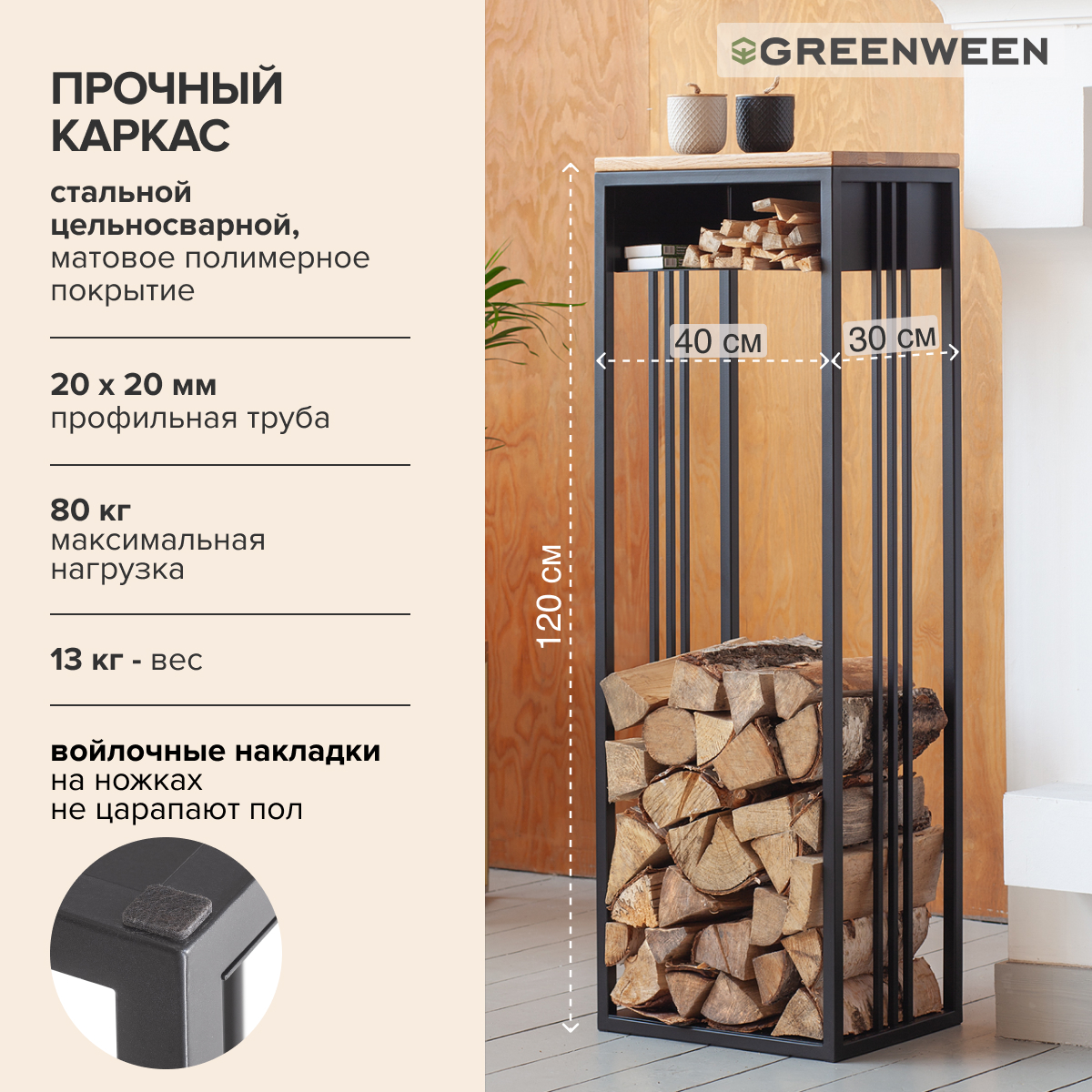 - Удобное хранение: вертикальная конструкция вмещает до 0,097 м³ дров (вес до 80 кг)