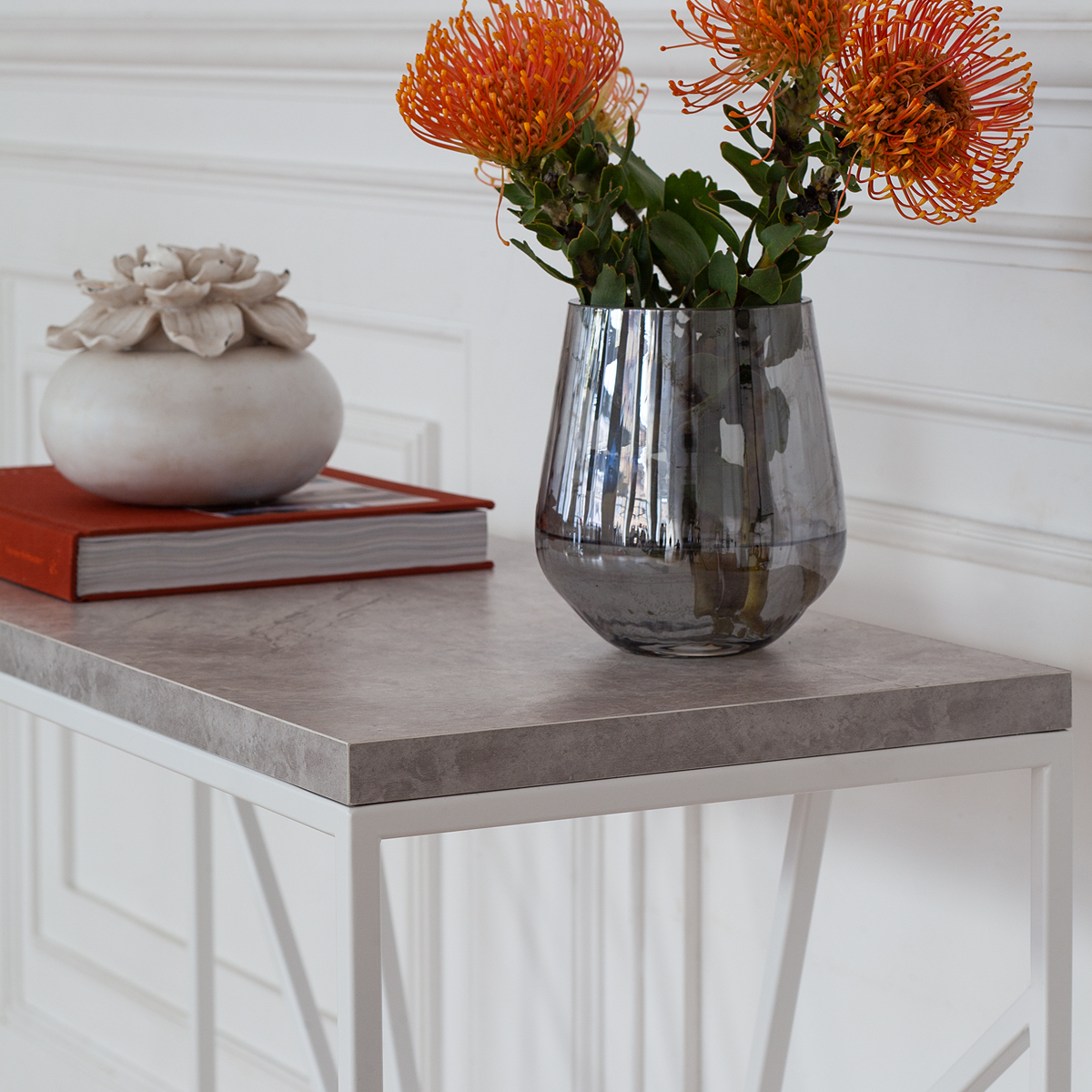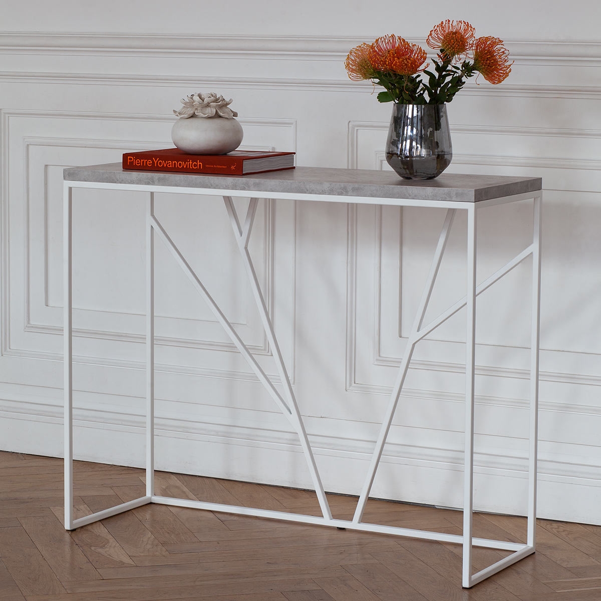 Консоль EVA привлекает внимание оригинальным дизайном. Белое металлическое основание дополняет столешница из ЛДСП. Консольный столик подойдет для зонирования гостиной, спальни, кухни и входной зоны. Консоли из металла популярны у дизайнеров для создания интерьеров в стиле лофт, минимализм, хай-тек. Стильная консоль дополнит интерьер квартиры, офиса, салона и загородного дома.
