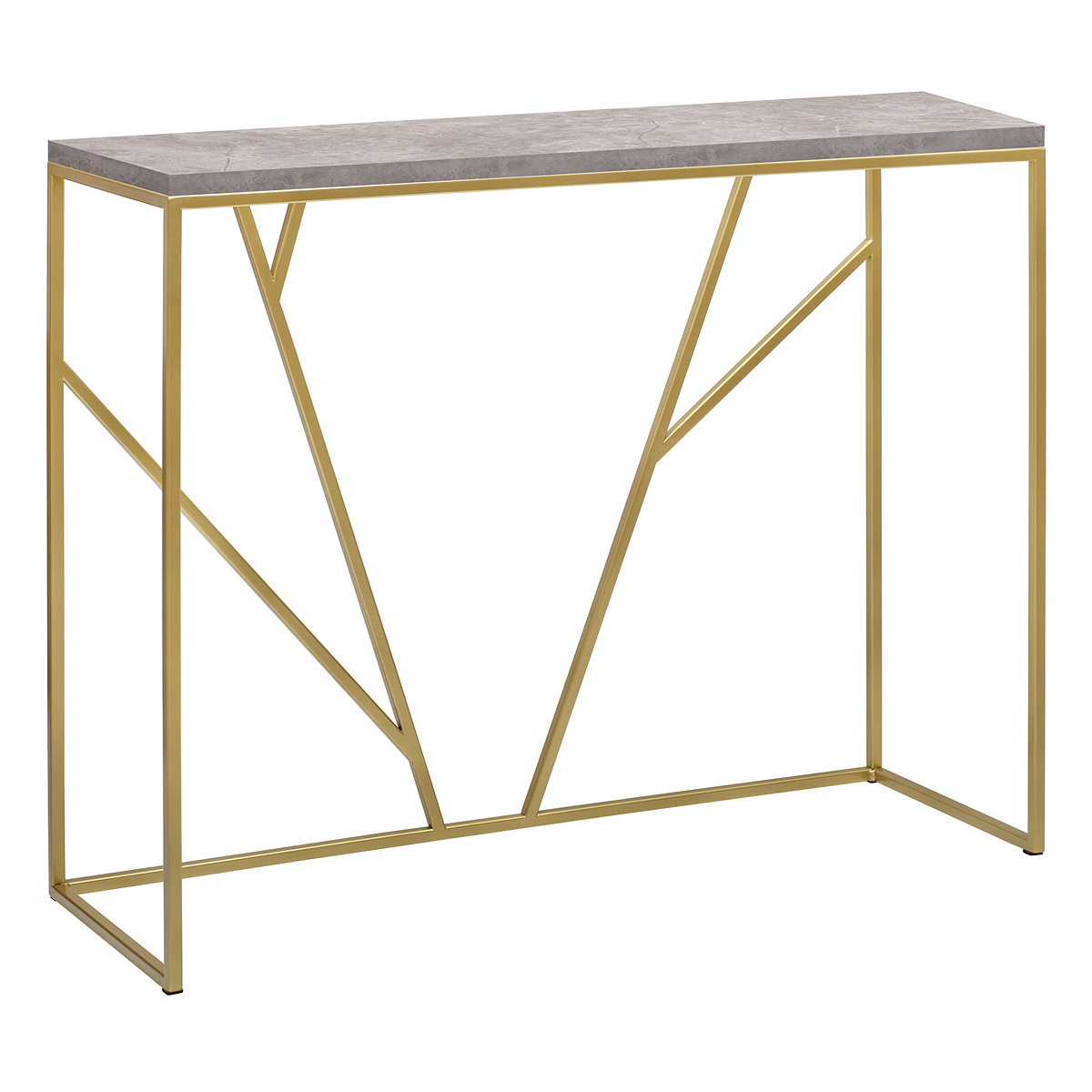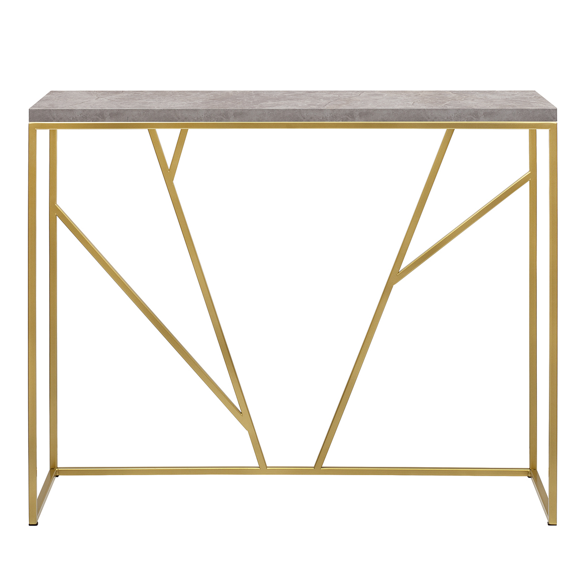 Золотая консоль EVA с металлическим основанием и полкой из ЛДСП, размеры 1000х350х830 мм.