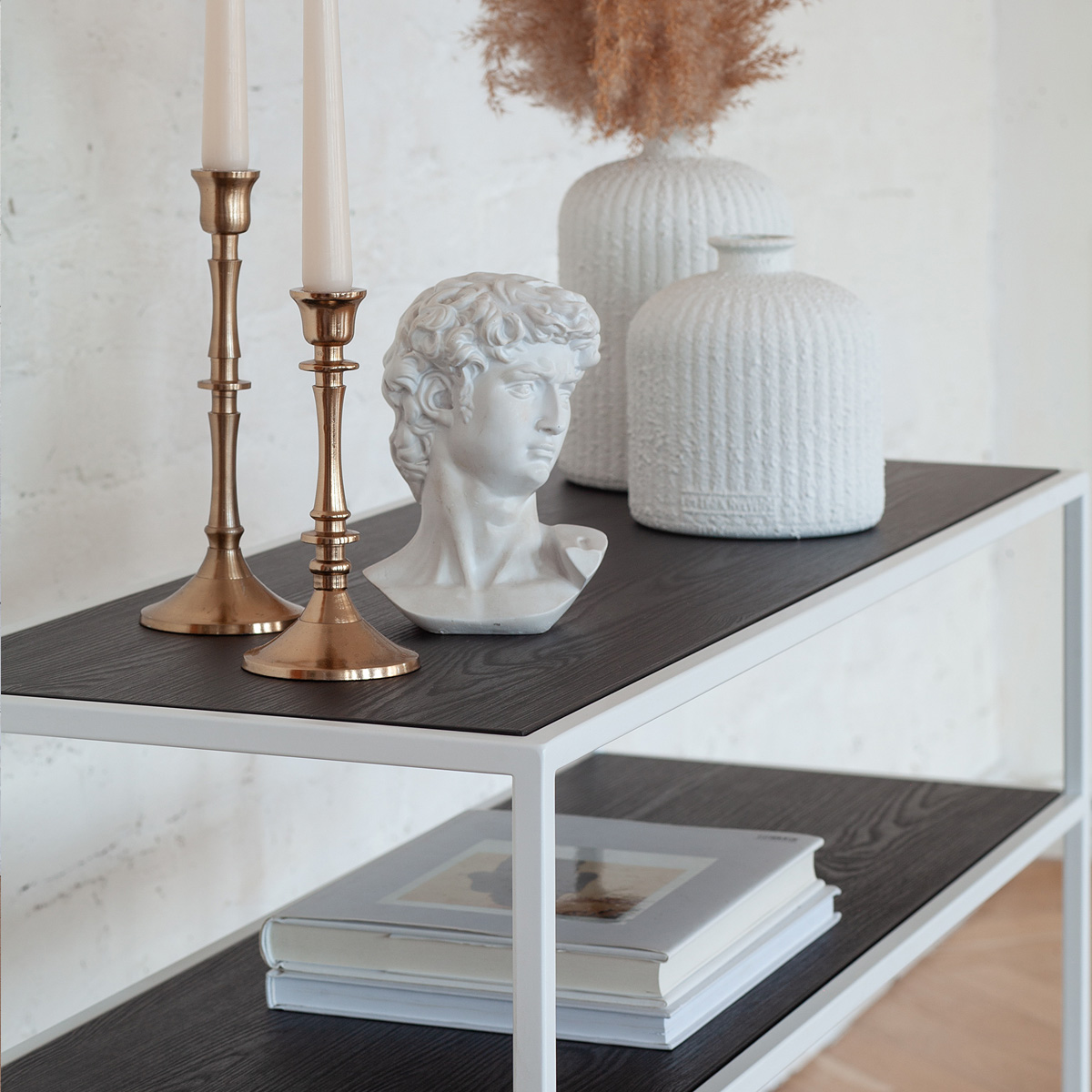 Консоль SKANDI привлекает внимание лаконичным дизайном и функциональностью. Белое металлическое основание дополняют 2 полки из ЛДСП. Консольный столик подойдет для зонирования гостиной, спальни, кухни и входной зоны. Консоли из металла популярны у дизайнеров для создания интерьеров в стиле лофт, минимализм, хай-тек. Стильная консоль дополнит интерьер квартиры, офиса, салона и загородного дома.