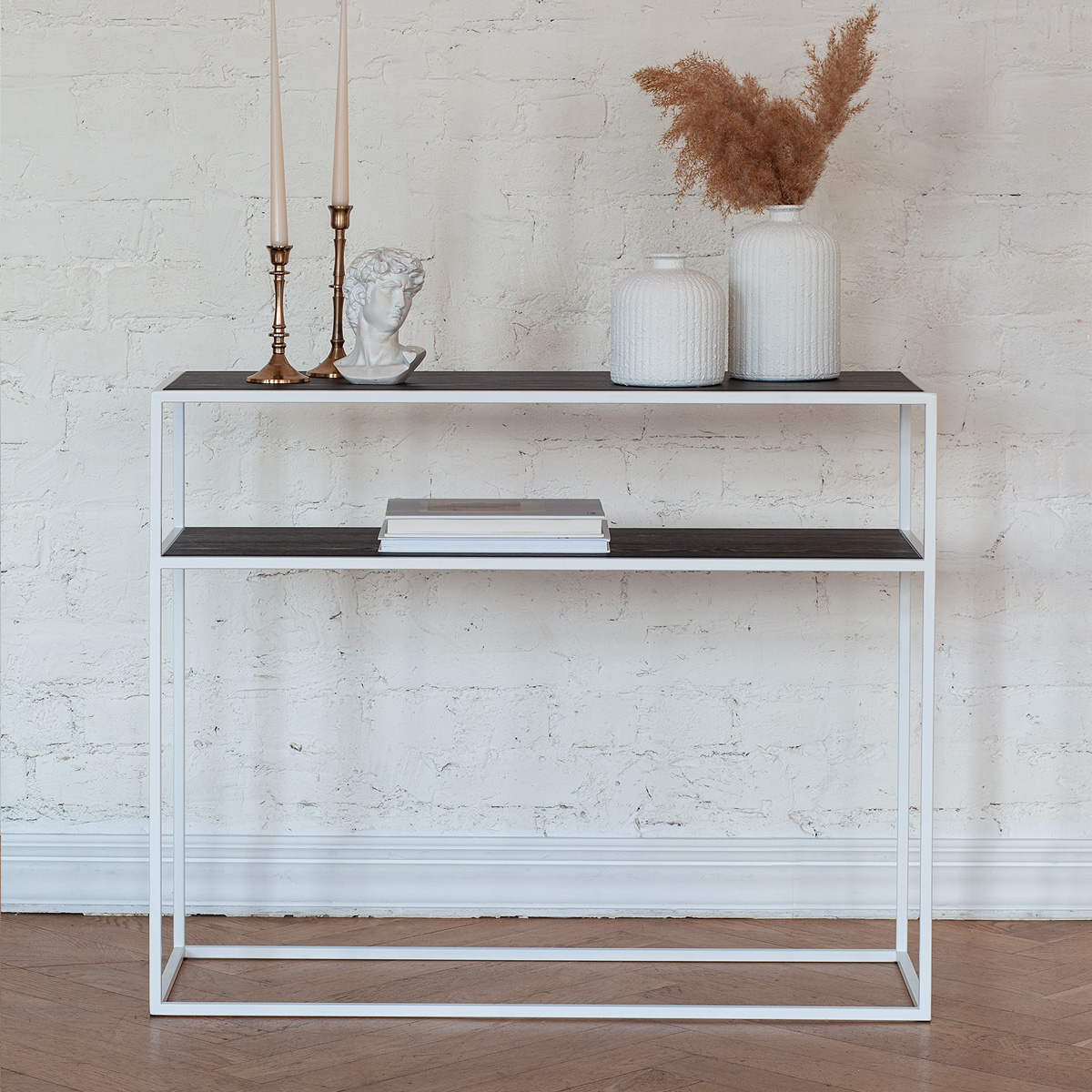 Консоль SKANDI с белым металлическим основанием и 2 полками из ЛДСП.