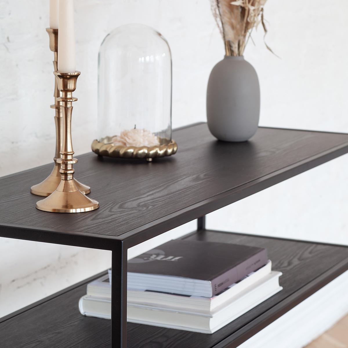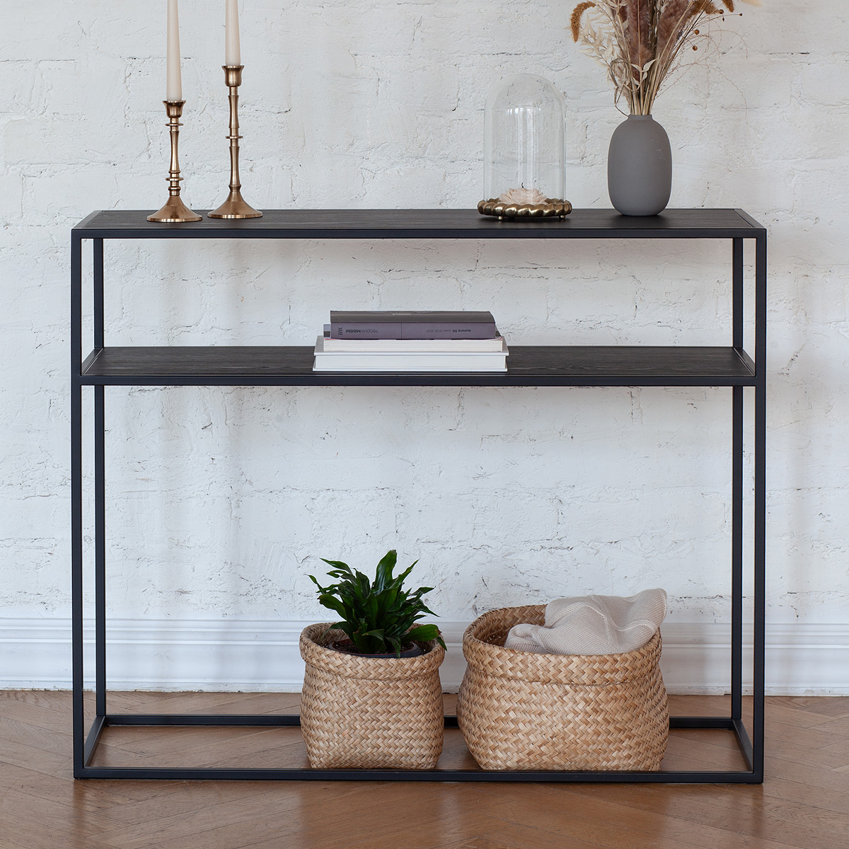 Консоль SKANDI с черным металлическим основанием и 2 полками из ЛДСП.
