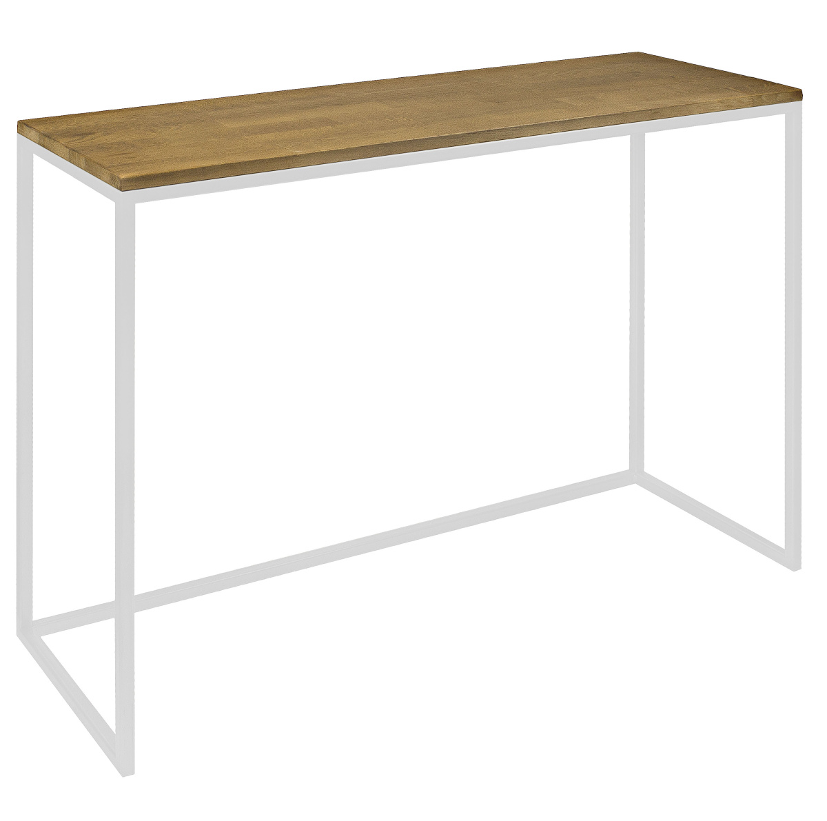 Каркас консольного стола изготовлен из стали с полимерным покрытием порошковой краской. Качественное покрытие гарантирует устойчивость к повреждениям и долгий срок службы мебели. Полка консоли выполнена из массива дуба толщиной 2 мм, выдерживает нагрузку до 10 кг.