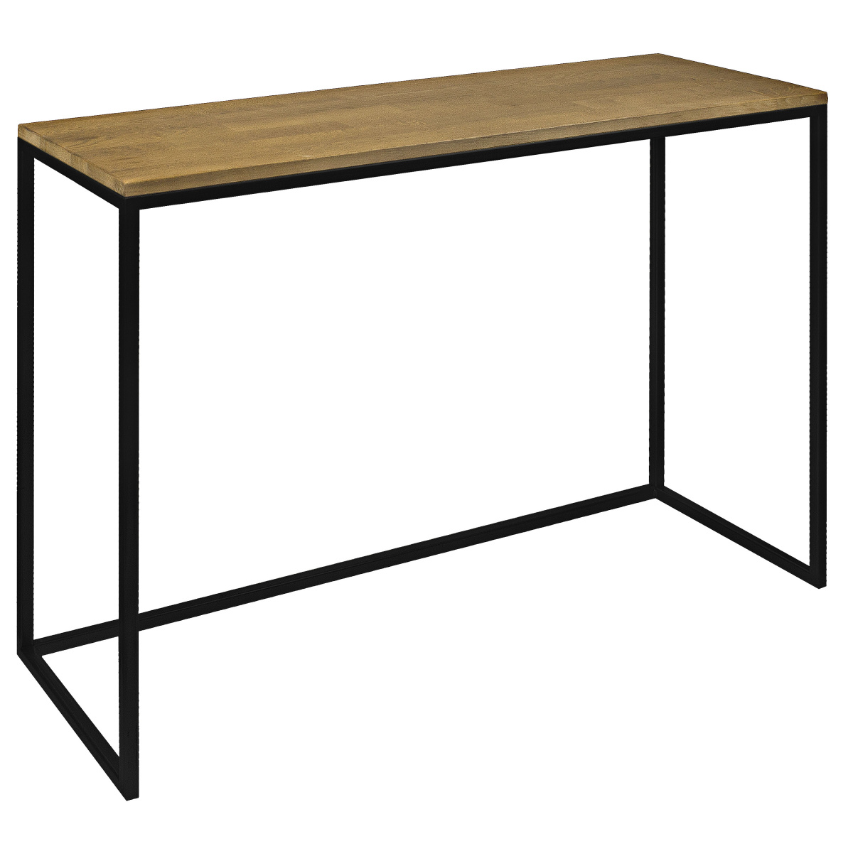 Черная консоль TORI со столешницей из массива дуба подойдет для зонирования гостиной, спальни и входной зоны.