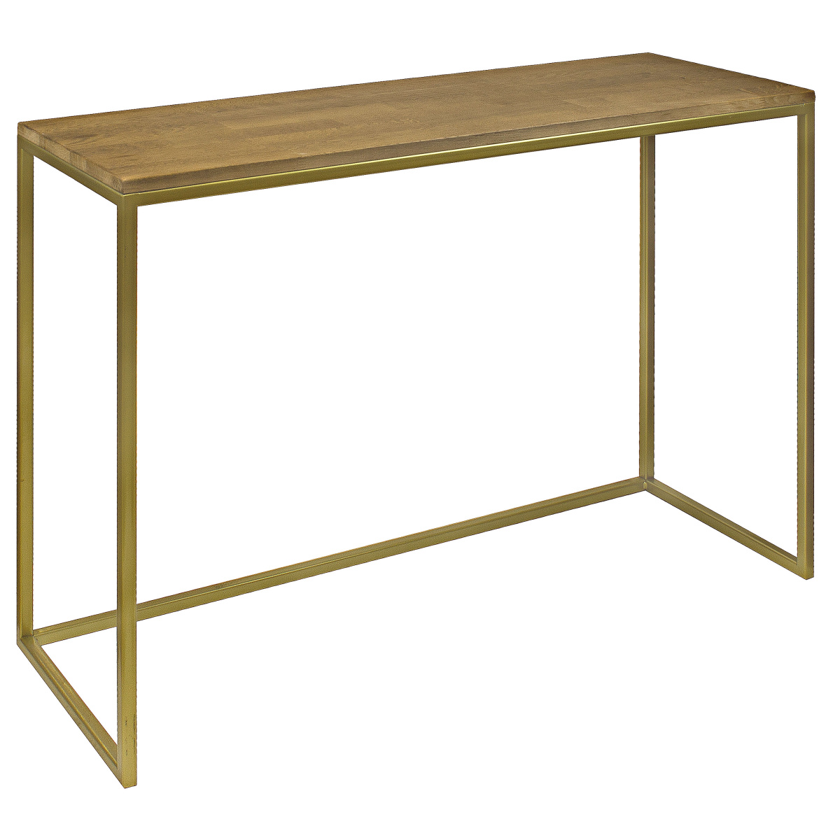 Золотая консоль TORI со столешницей из массива дуба подойдет для зонирования гостиной, спальни и входной зоны.