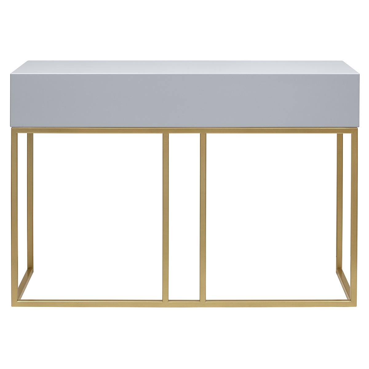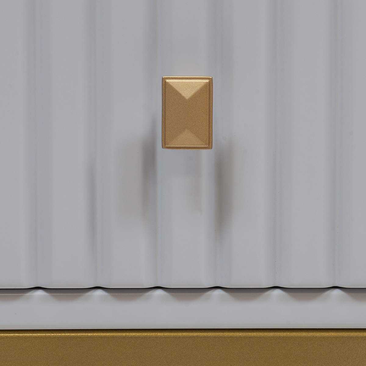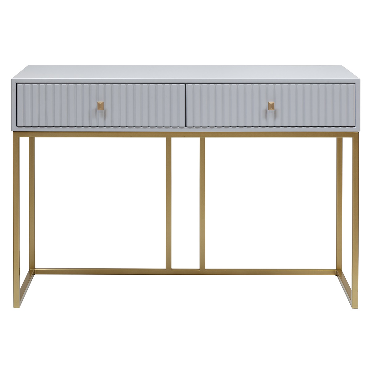 Консоль VERONA с золотым каркасом и рифленым фасадом из МДФ жемчужно-серого оттенка создана для вашего интерьера.