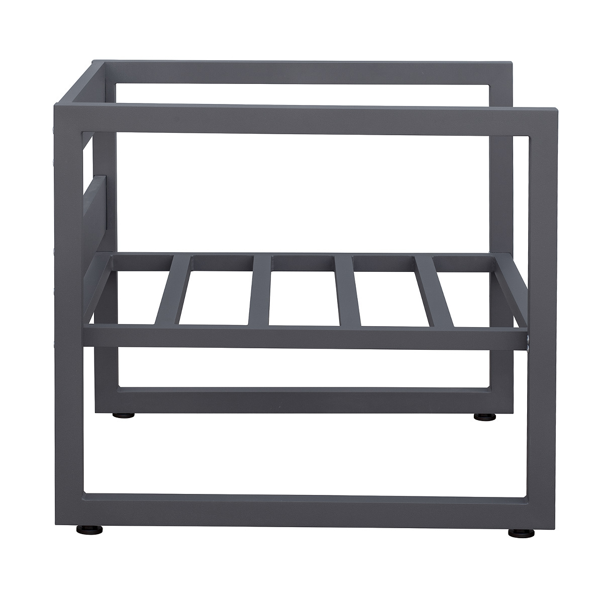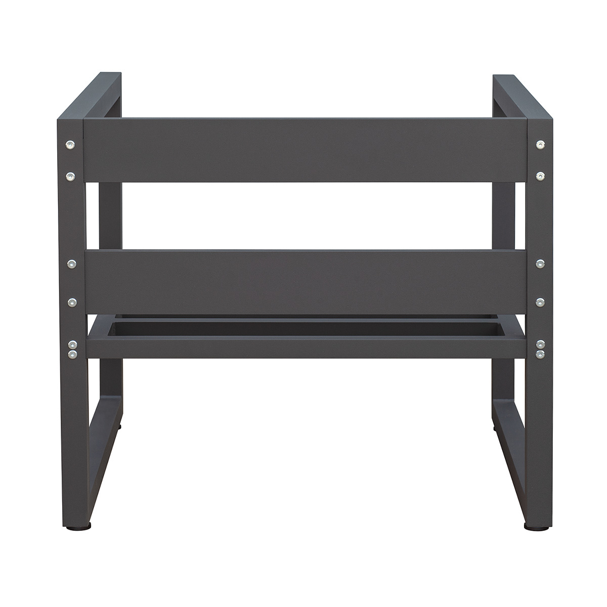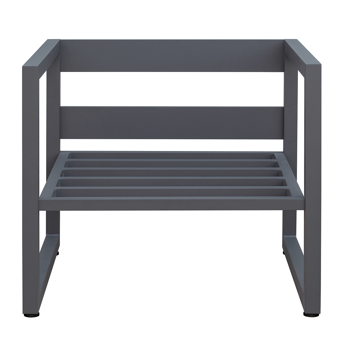 Каркас уличного кресла изготовлен из алюминиевой профильной трубы с использованием высокоточного лазерного оборудования, что гарантирует премиальное качество, надежность и эстетику сварных швов и изделия в целом. Прочный каркас и регулируемые ножки обеспечивают устойчивость кресла на любой поверхности. Профессиональная порошковая покраска гарантирует долгий срок службы мебели.