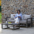 Уличный диван дополняет большая подушка для сидения и 3 мягкие подушки под спину в чехлах из водонепроницаемой ткани, 100% олефин. Дышащий материал устойчив к загрязнениям и воздействию воды, препятствует образованию пятен от напитков и лосьонов для загара, облегчает чистку и уход за обивкой. Большая подушка темно-серого цвета обеспечивает глубокую посадку, размеры 64х74х16 см, подушка под спину с геометрическим принтом, размеры 62х44х20 см. В мебельных чехлах установлена молния, при необходимости их можно снять и почистить. Набивка большой подушки - поролон, подушка для спины набита синтепоном, обе упакованы в несъёмный чехол из спанбонда.