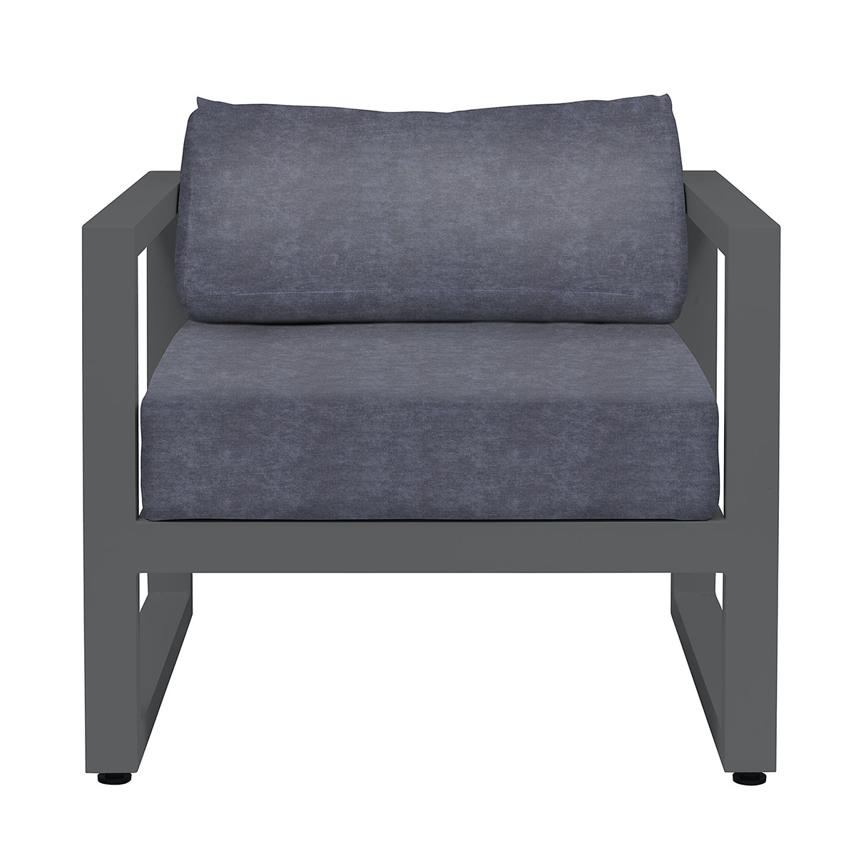 Комплект уличной мебели CAPRI создает комфортное пространство для отдыха в саду, на террасе, у бассейна. В наборе представлены кресло и пуф. Каркас изготовлен из высокопрочного алюминия, на сиденьях предусмотрены удобные подушки темно-серого оттенка.