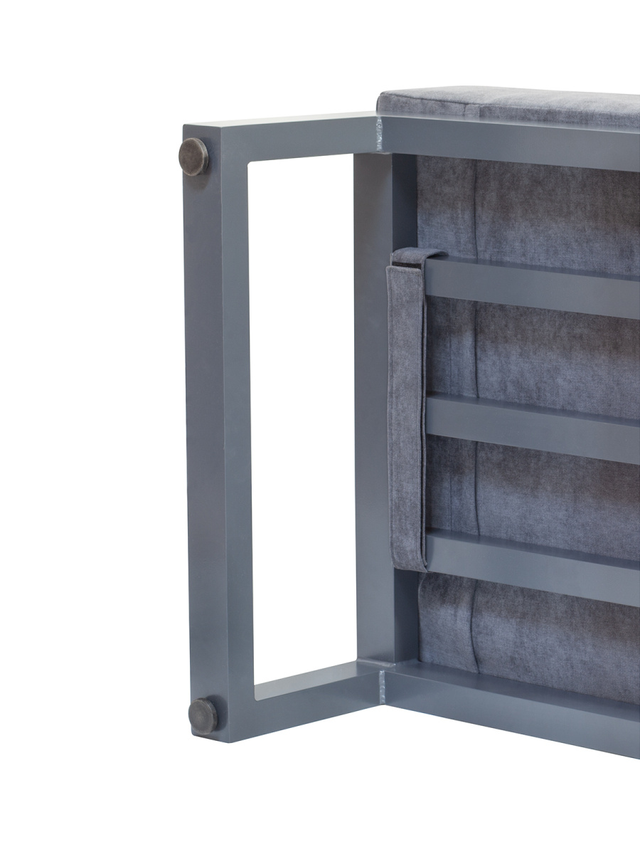 Каркас мебели изготовлен из алюминиевой профильной трубы 60х40 мм на высокоточном лазерном оборудовании. Металлическое основание с матовым полимерным покрытием темно-серого цвета характеризуется повышенной прочностью, устойчивостью к царапинам. Профессиональная порошковая покраска надолго сохранит внешний вид мебели. Регулируемые по высоте ножки позволяют устанавливать мебель на неровной поверхности.
