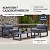 Комплект уличной мебели CAPRI создает комфортное пространство для отдыха в саду, на террасе, у бассейна. В наборе представлены 2 кресла и журнальный столик. Каркас изготовлен из высокопрочного алюминия, на сиденьях предусмотрены удобные подушки темно-серого оттенка.