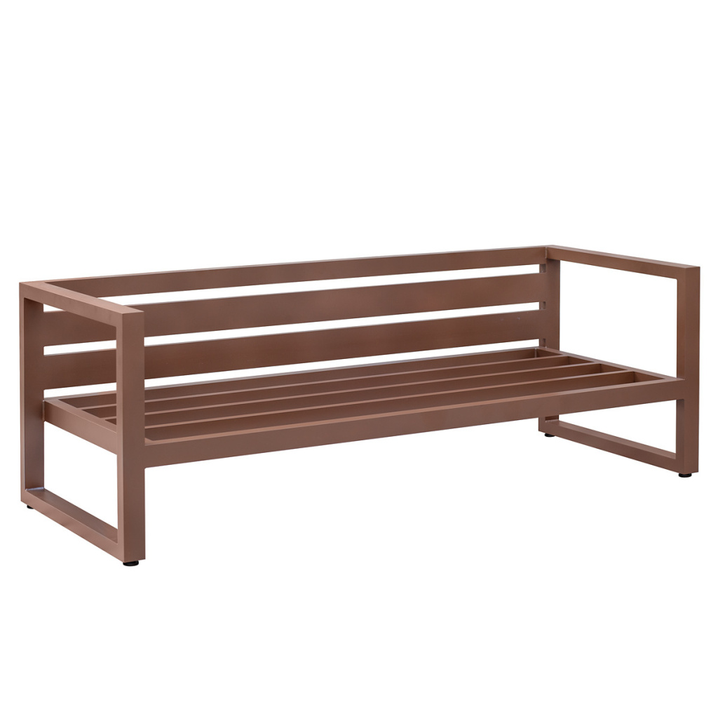 Каркас мебели изготовлен из алюминиевой профильной трубы 60х40 мм на высокоточном лазерном оборудовании. Металлическое основание с матовым полимерным покрытием коричневого цвета характеризуется повышенной прочностью, устойчивостью к царапинам. Профессиональная порошковая покраска надолго сохранит внешний вид мебели. Регулируемые по высоте ножки позволяют устанавливать мебель на неровной поверхности.