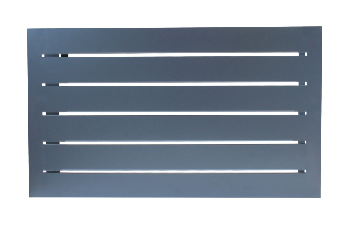 Каркас мебели изготовлен из алюминиевой профильной трубы 60х40 мм на высокоточном лазерном оборудовании. Металлическое основание с матовым полимерным покрытием темно-серого цвета характеризуется повышенной прочностью, устойчивостью к царапинам. Профессиональная порошковая покраска надолго сохранит внешний вид мебели. Регулируемые по высоте ножки позволяют устанавливать мебель на неровной поверхности.