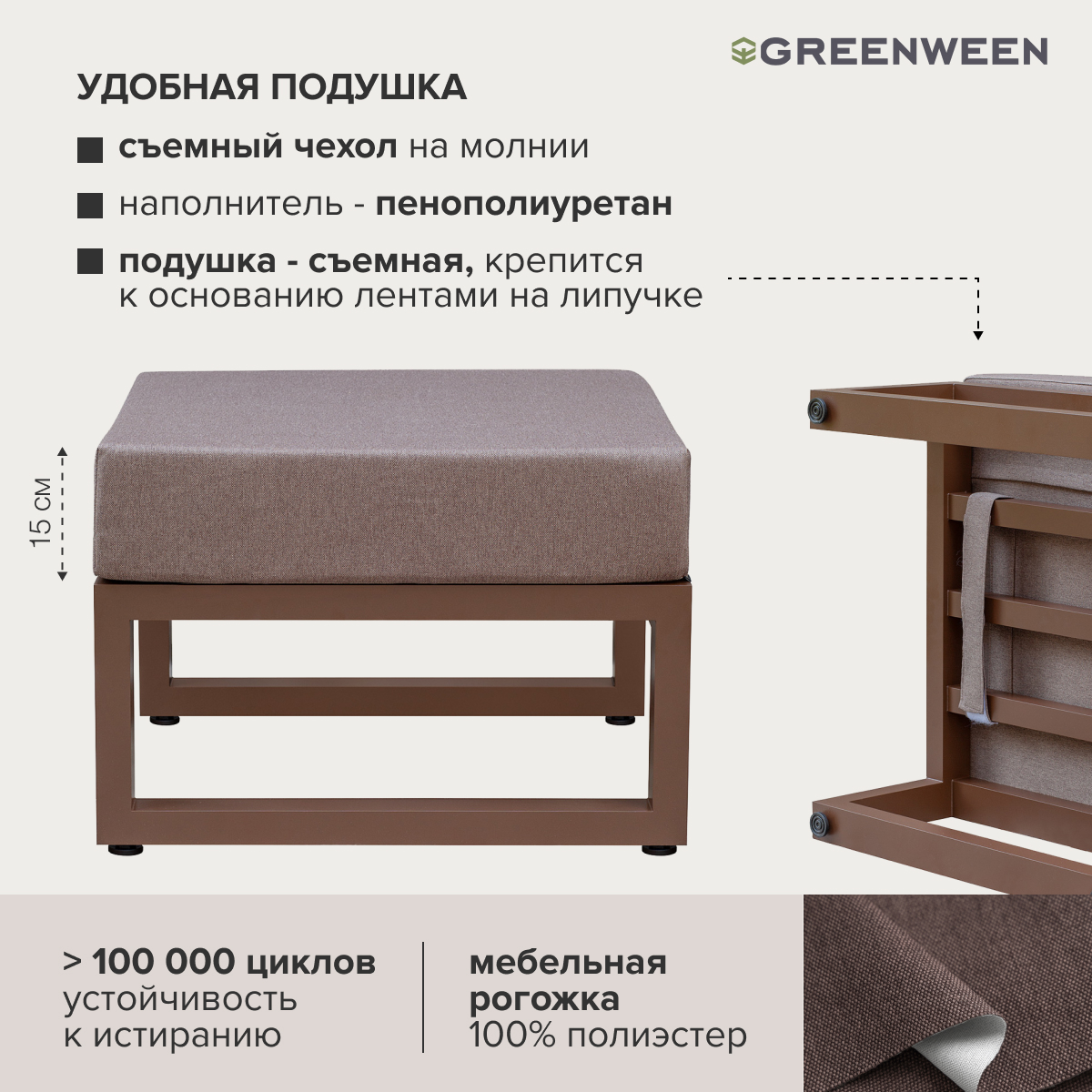 - 4 текстильные подушки в съемных чехлах,