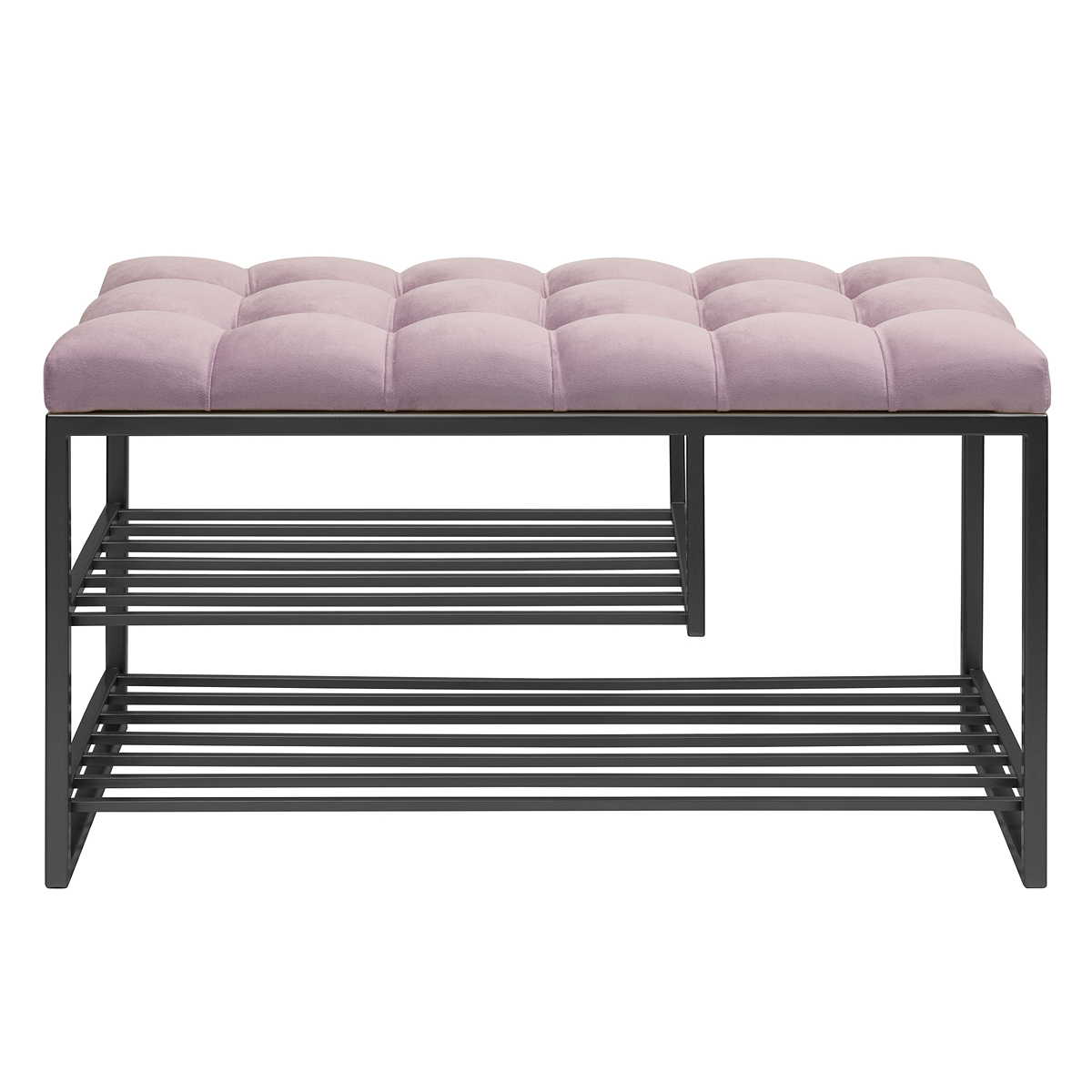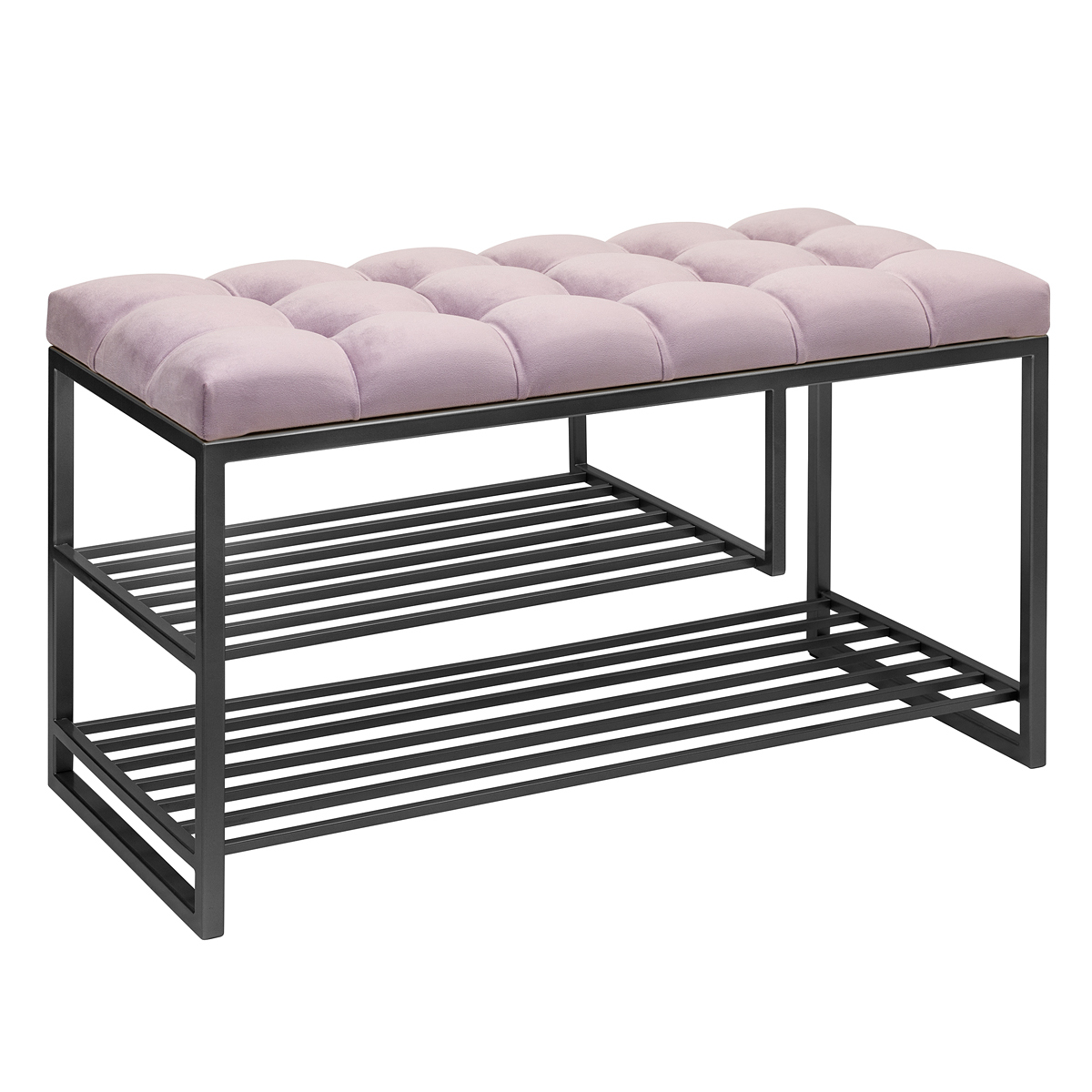 Обувница GARDA PLUS, черный каркас, сидение велюр цвет Dusty Pink, каретная стяжка, 850х400х520, GW-GARDAPLUS-DP-850B-K