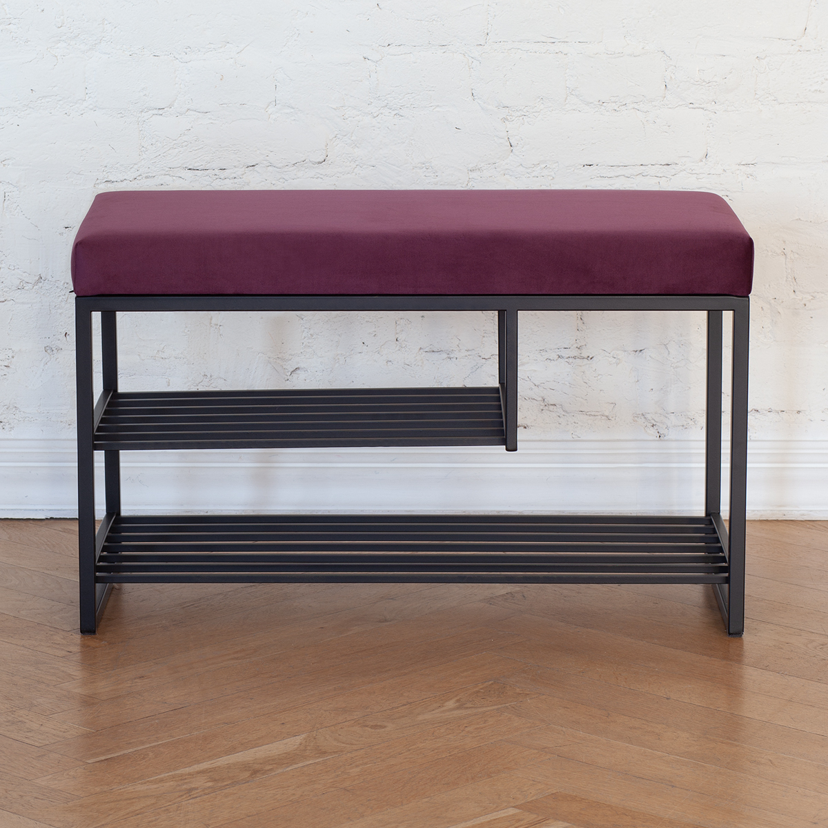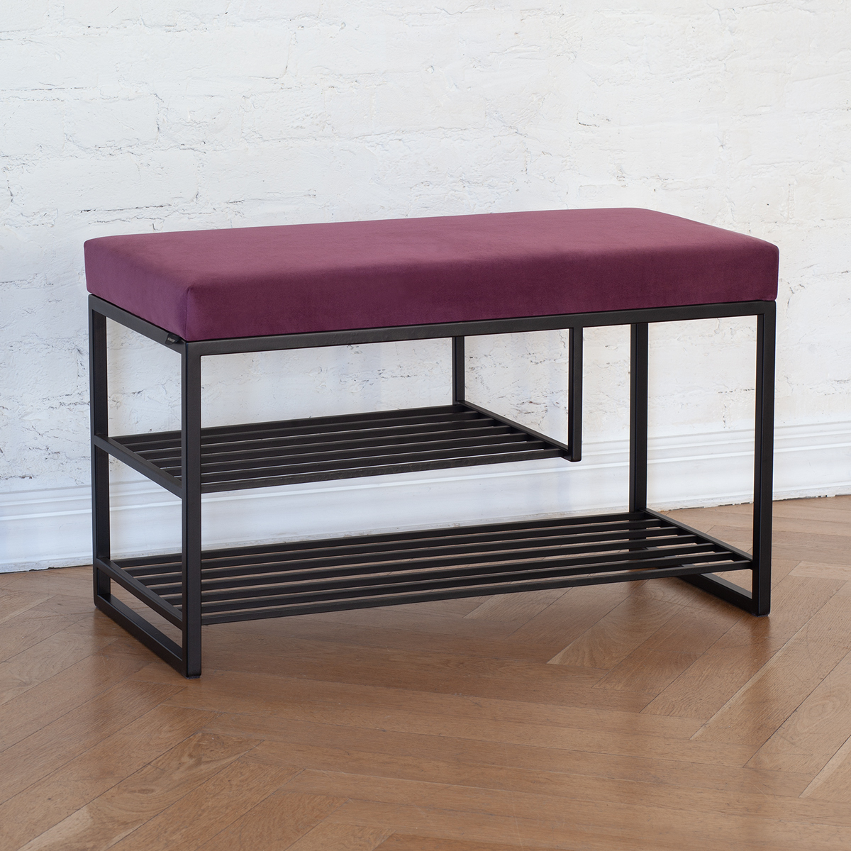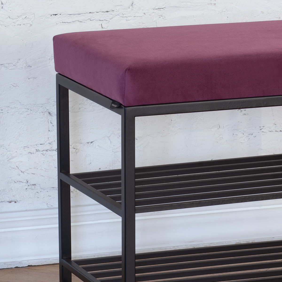 Эффектное сочетание бархатистой обивки и металлического основания понравится всем ценителям стильной и надежной мебели. Качественные материалы позволят надолго сохранить первоначальный внешний вид обувницы.