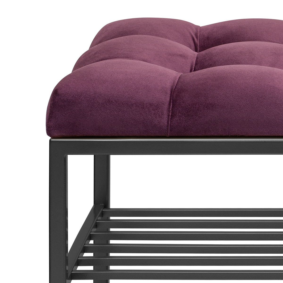 Обувница GARDA PLUS, черный каркас, сидение велюр цвет Marsala, каретная стяжка, 850х400х520, GW-GARDAPLUS-MARS-850B-K