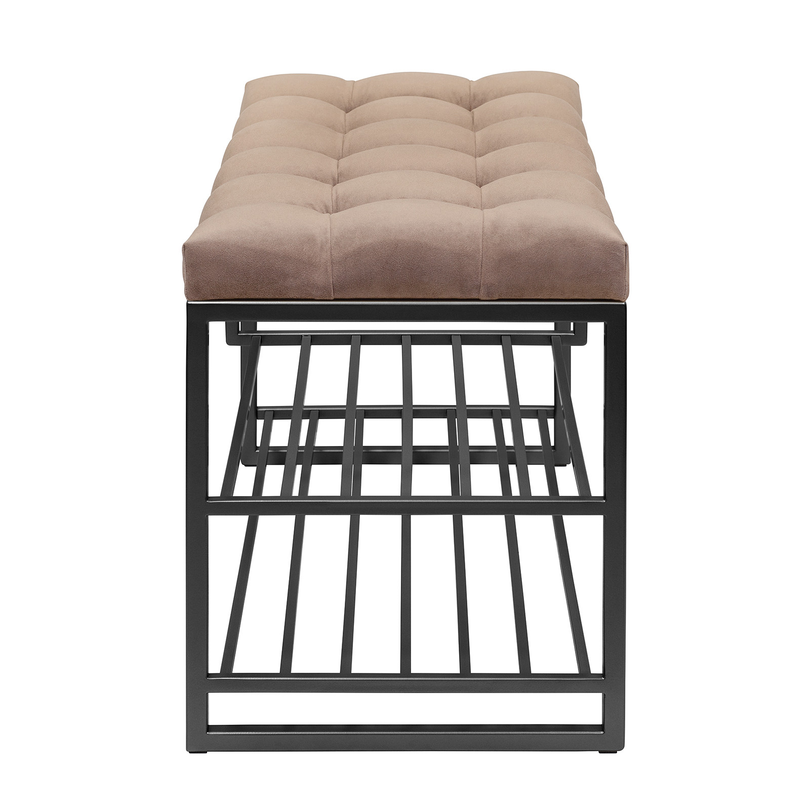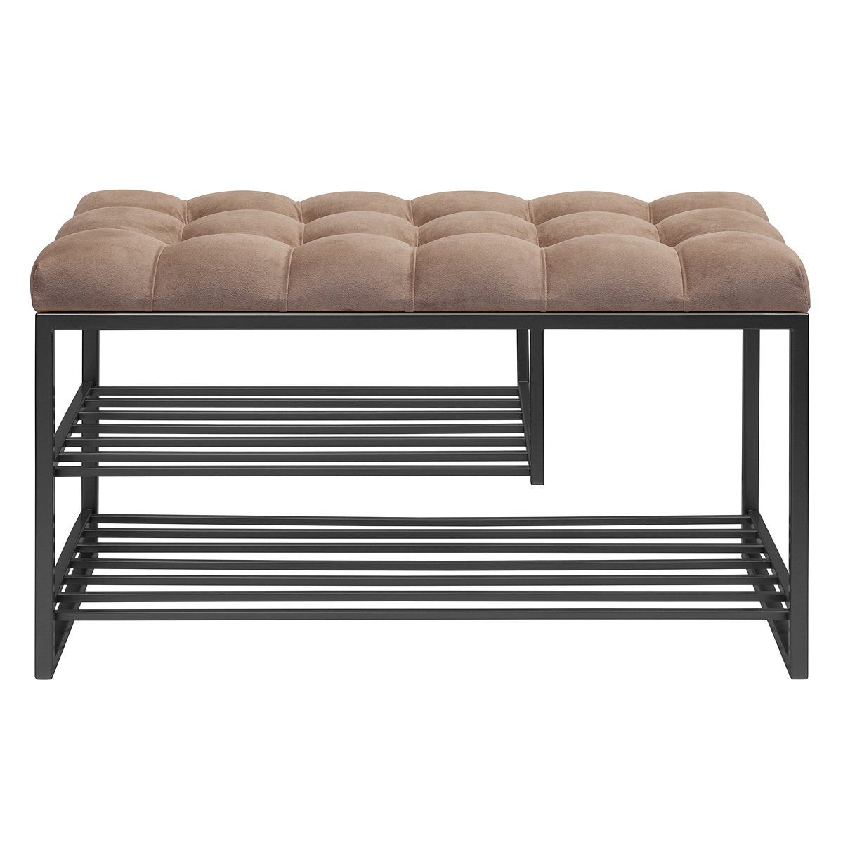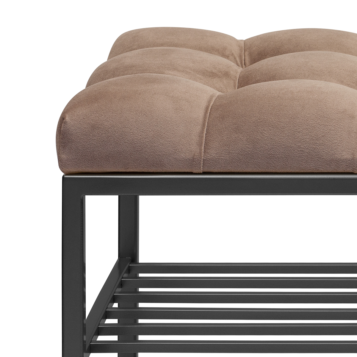 Обувница GARDA PLUS, черный каркас, сидение велюр цвет Mocco, каретная стяжка, 850х400х520, GW-GARDAPLUS-M-850B-K