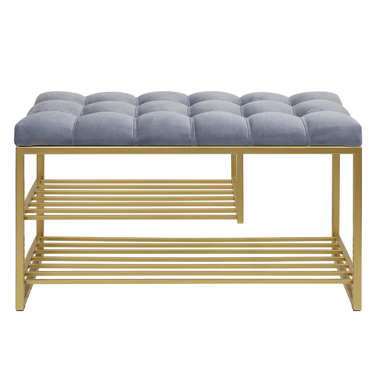 Эффектное сочетание бархатистой обивки и металлического основания понравится всем ценителям стильной и надежной мебели. Качественные материалы позволят надолго сохранить первоначальный внешний вид обувницы.