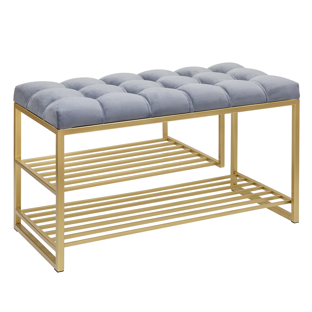 Обувница GARDA PLUS, золотой каркас, сидение велюр цвет Light Blue, каретная стяжка, 850х400х520, GW-GARDAPLUS-LB-850G-K