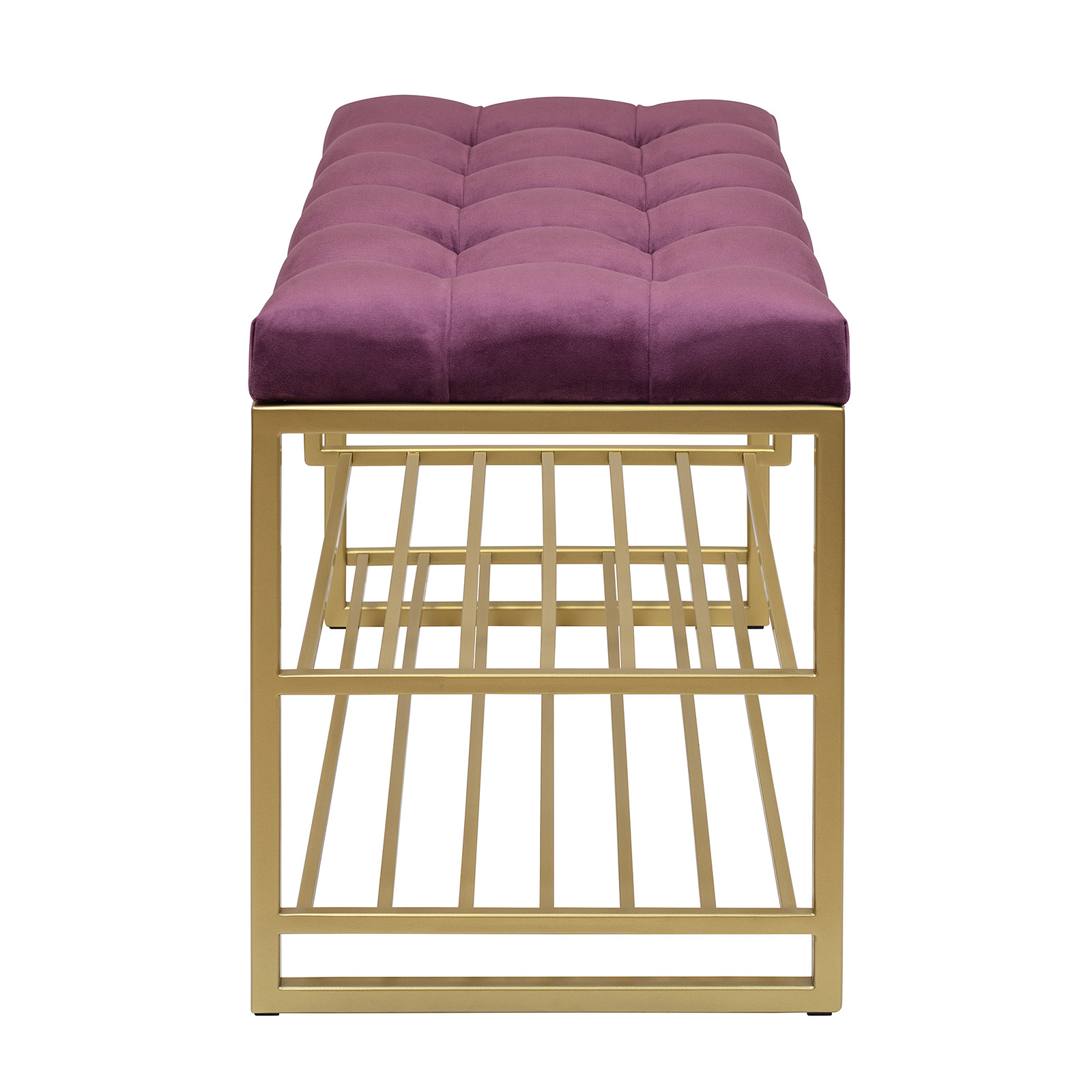 Обувница GARDA PLUS, золотой каркас, сидение велюр цвет Marsala, каретная стяжка, 850х400х520, GW-GARDAPLUS-MARS-850G-K