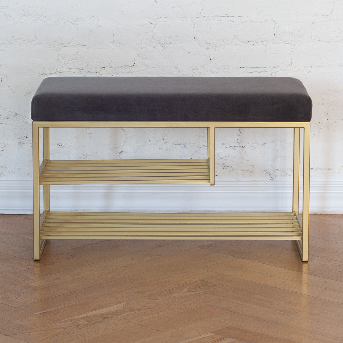 Эффектное сочетание бархатистой обивки и металлического основания понравится всем ценителям стильной и надежной мебели. Качественные материалы позволят надолго сохранить первоначальный внешний вид обувницы.