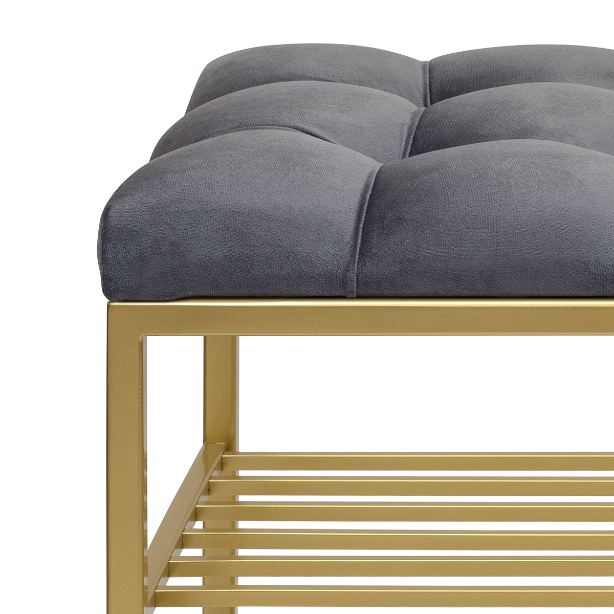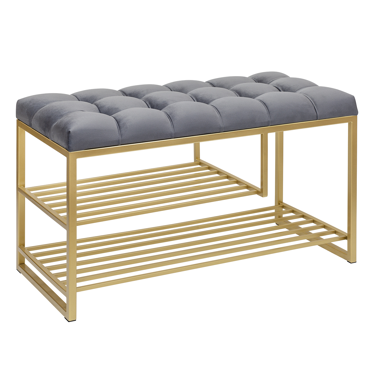Обувница GARDA PLUS, золотой каркас, сидение велюр цвет Mouse Grey, каретная стяжка, 850х400х520, GW-GARDAPLUS-MG-850G-K