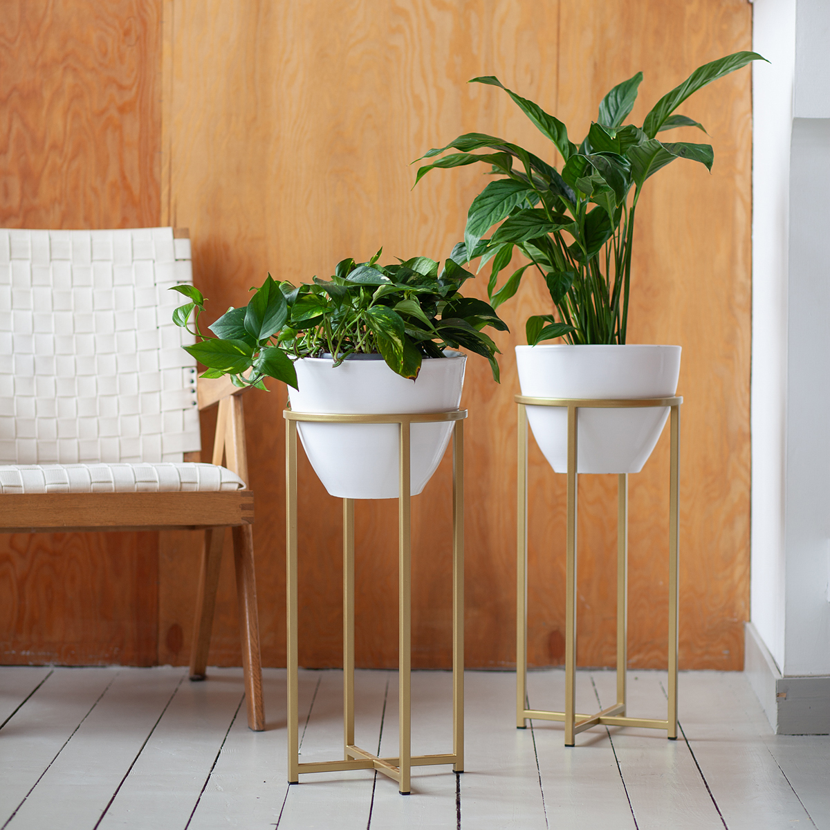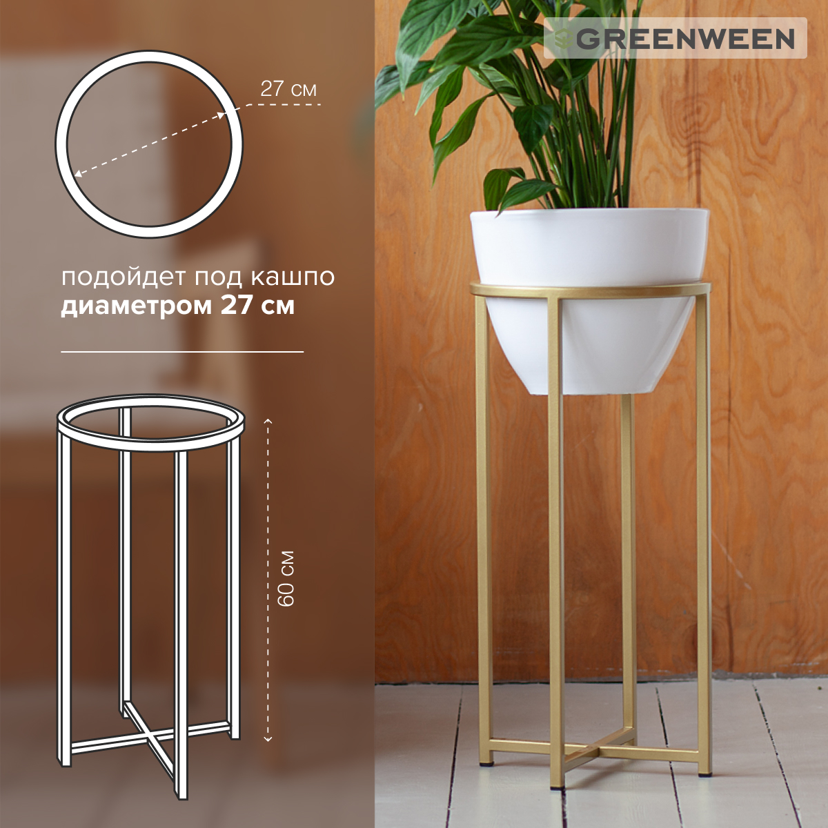 Металлическая подставка под кашпо GRACE с золотым основанием из стали.