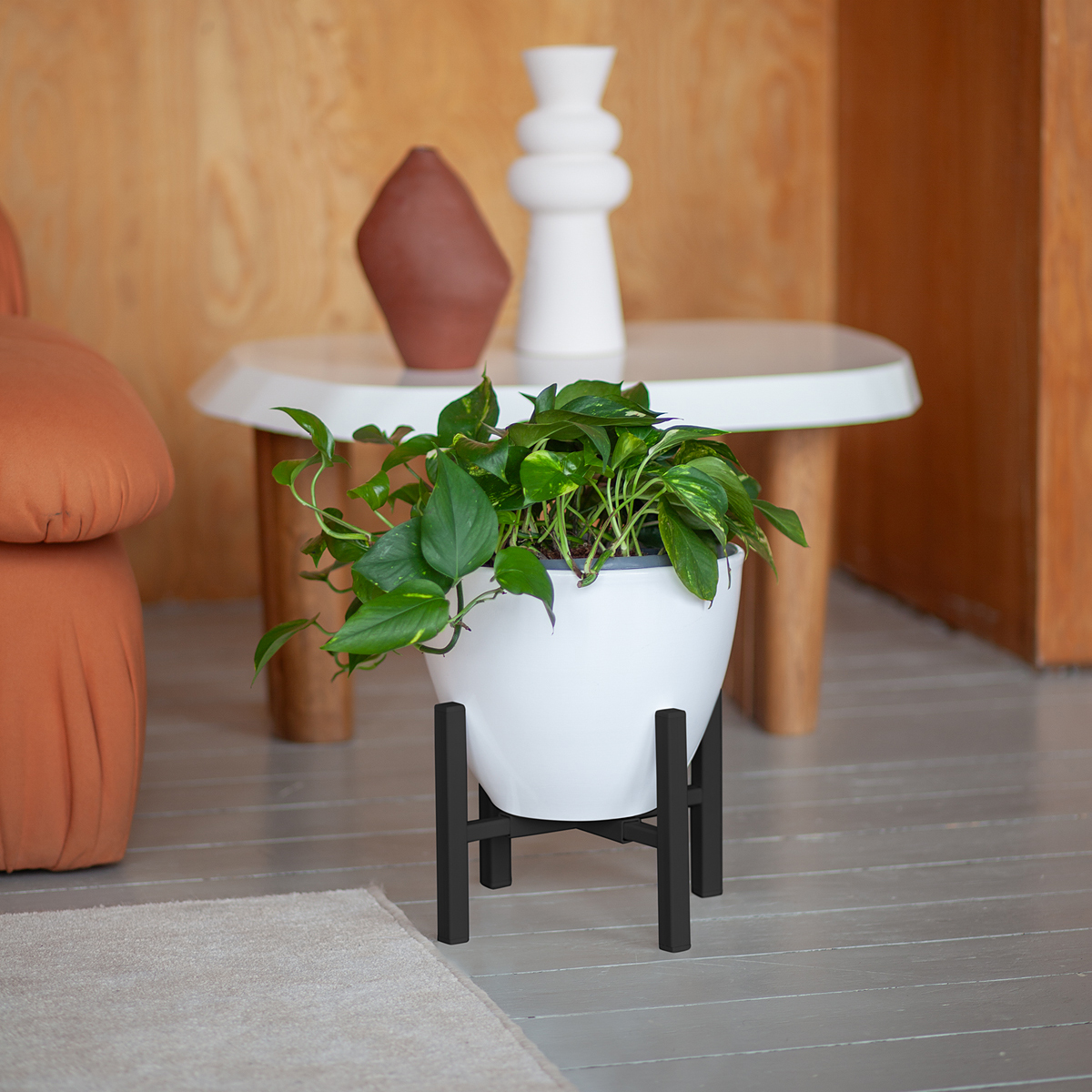 Металлическая подставка под кашпо OXALIS с черным основанием из стали.
