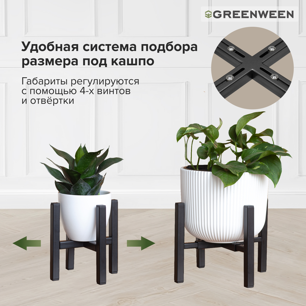 Вы можете разместить кашпо от 11,5 до 17 см в диаметре.
