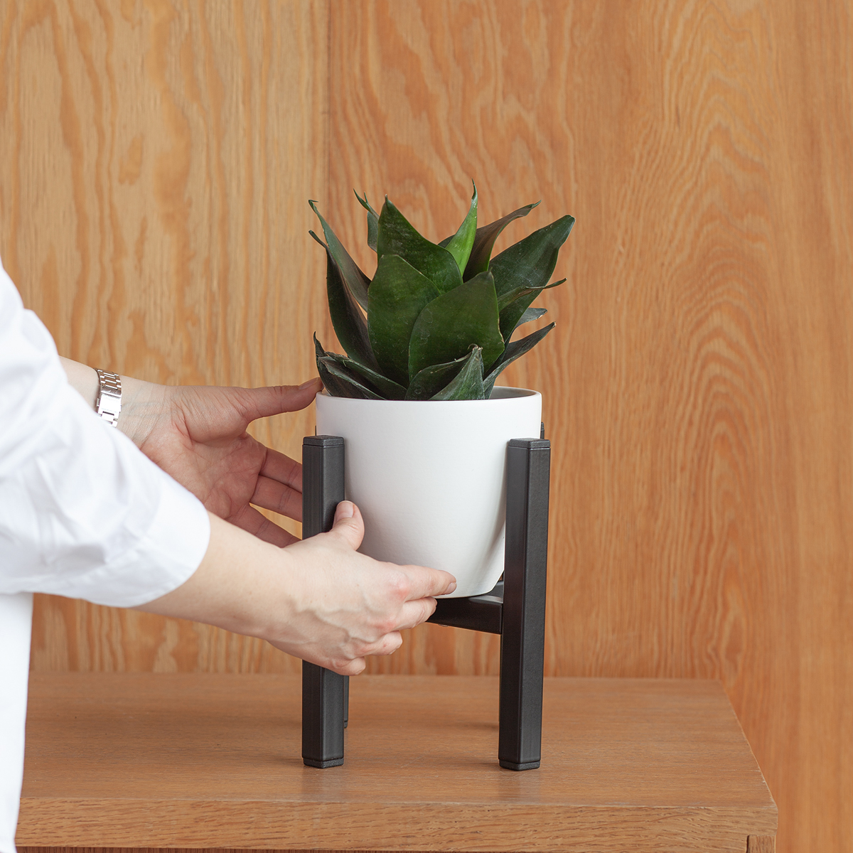 Вы можете разместить кашпо от 11,5 до 17 см в диаметре. Кроме того, подставку для растений вы можете использовать с двух сторон: с одной стороны глубина 7 см, если подставку перевернуть, то глубина места под кашпо 10 см.