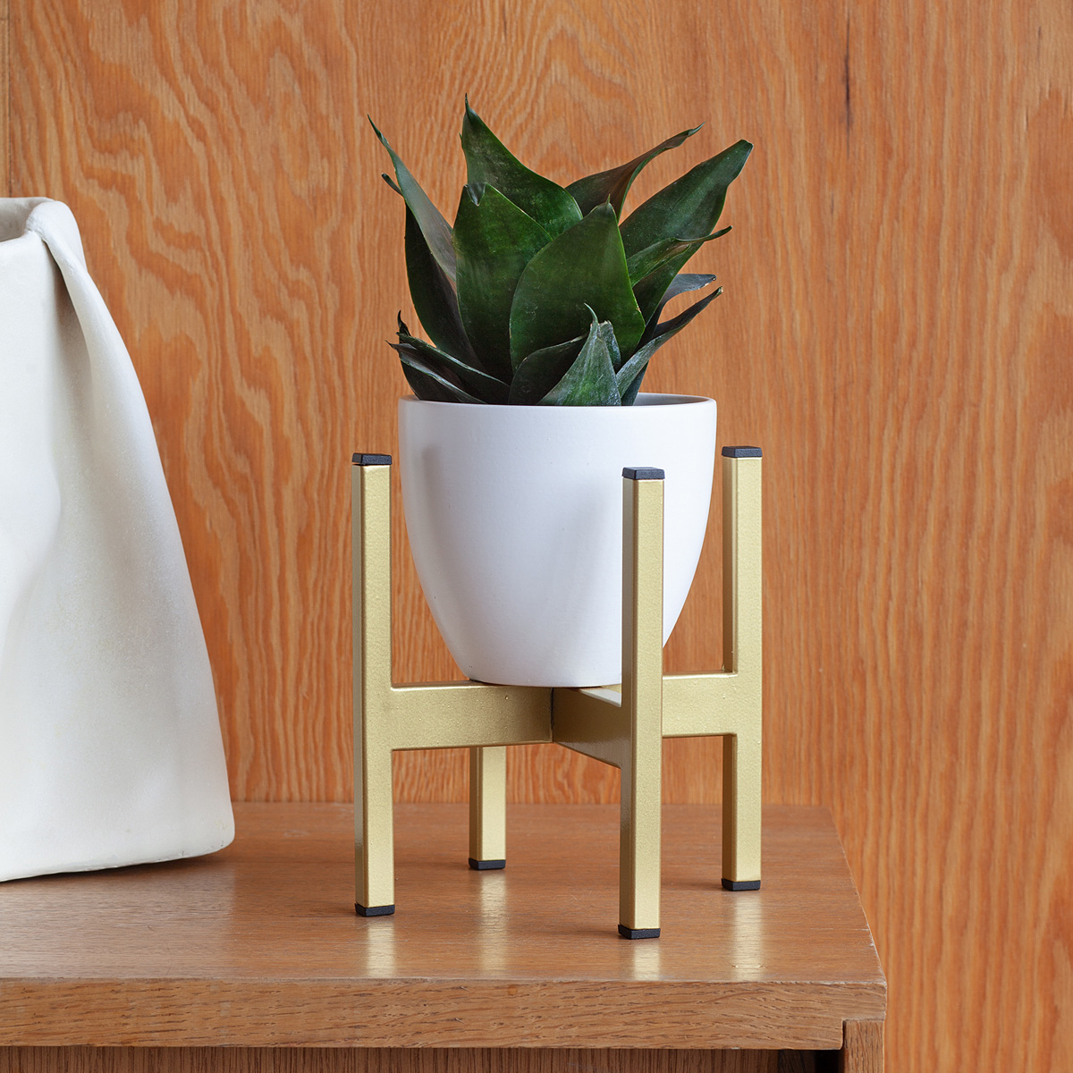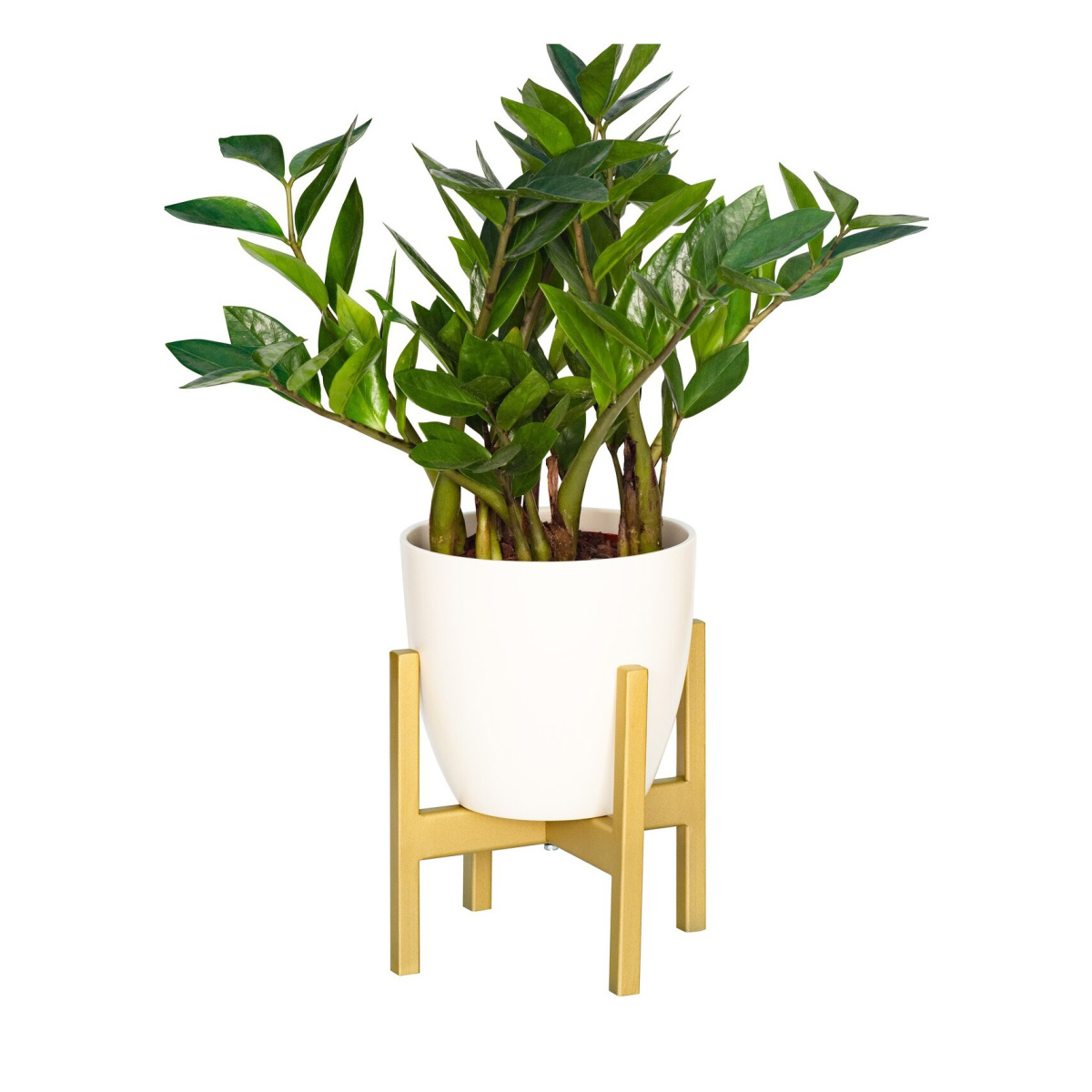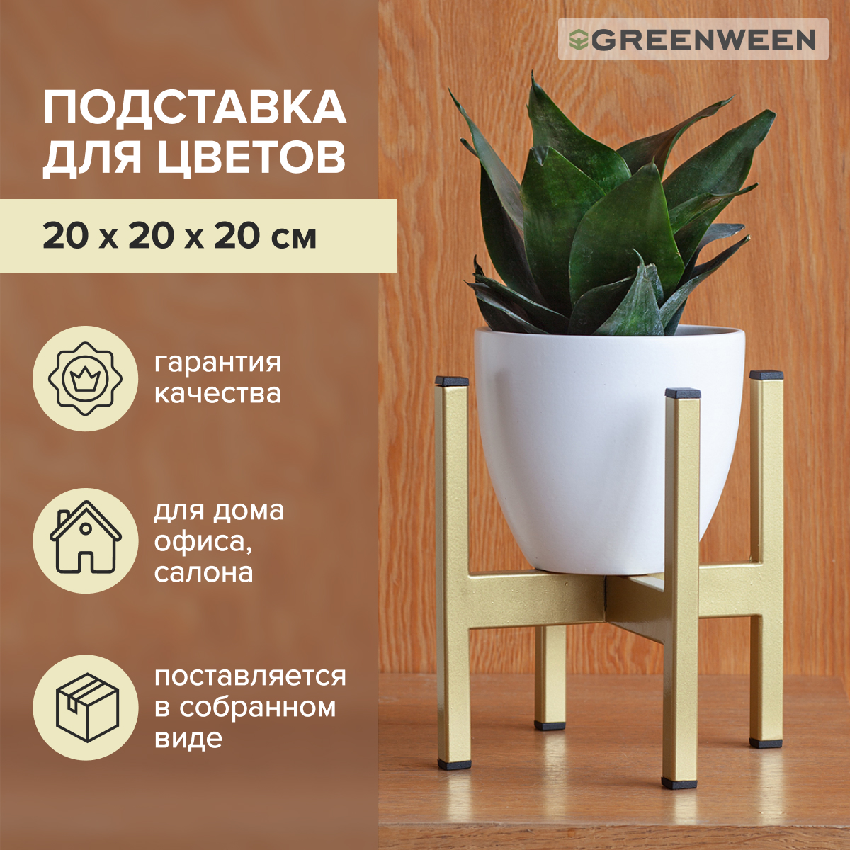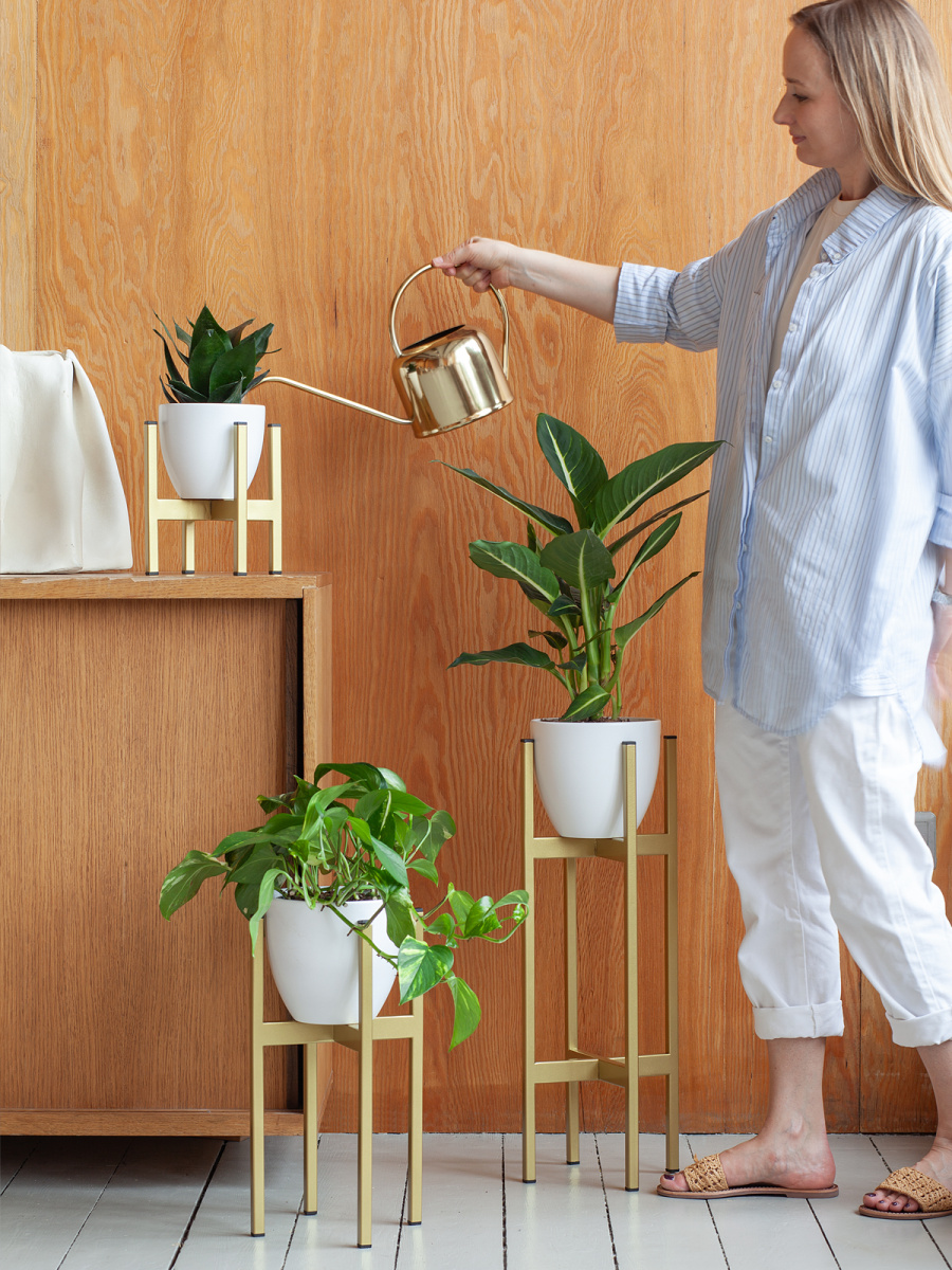 Металлическая подставка под кашпо OXALIS с золотым основанием из стали.