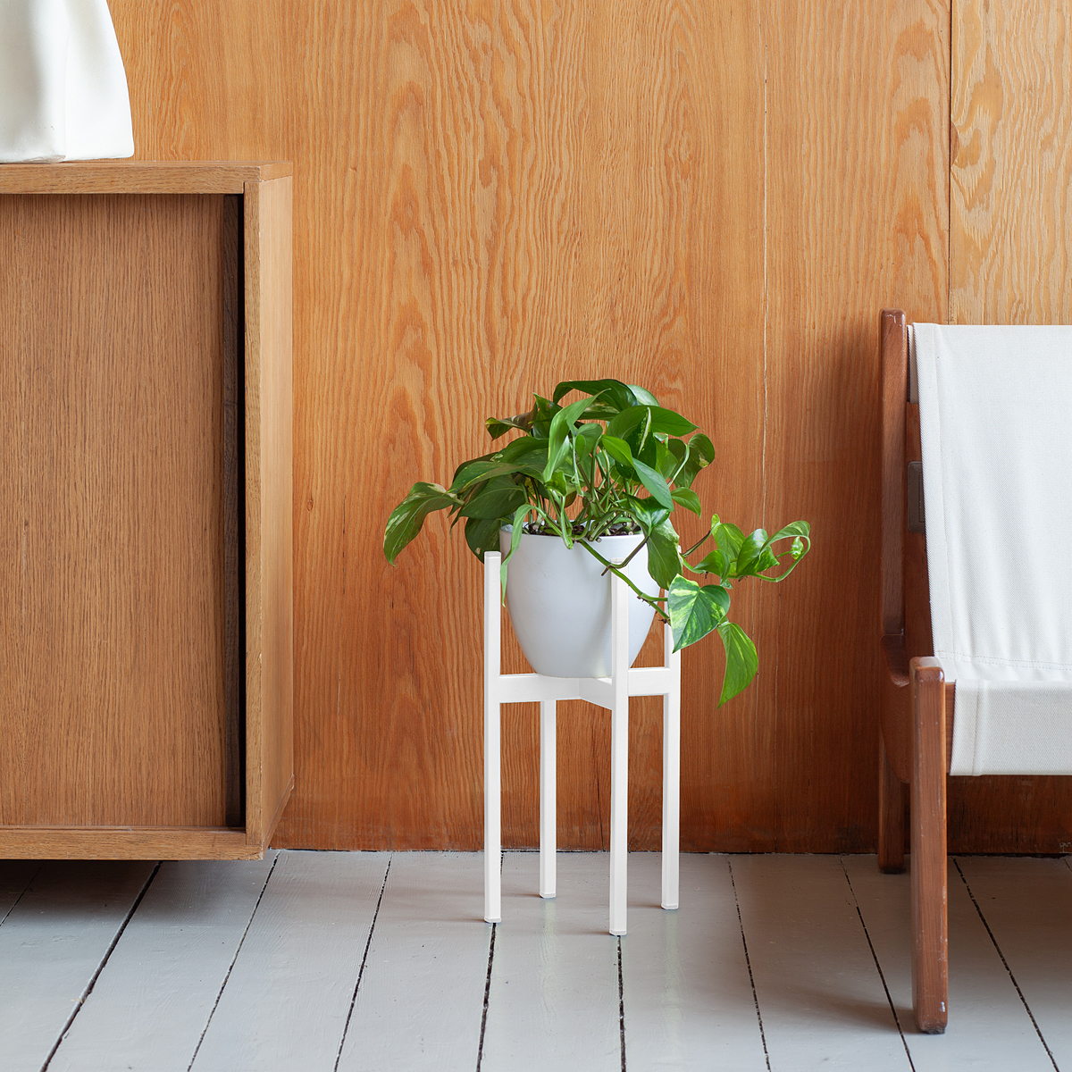 Металлическая подставка под кашпо OXALIS с белым основанием из стали.