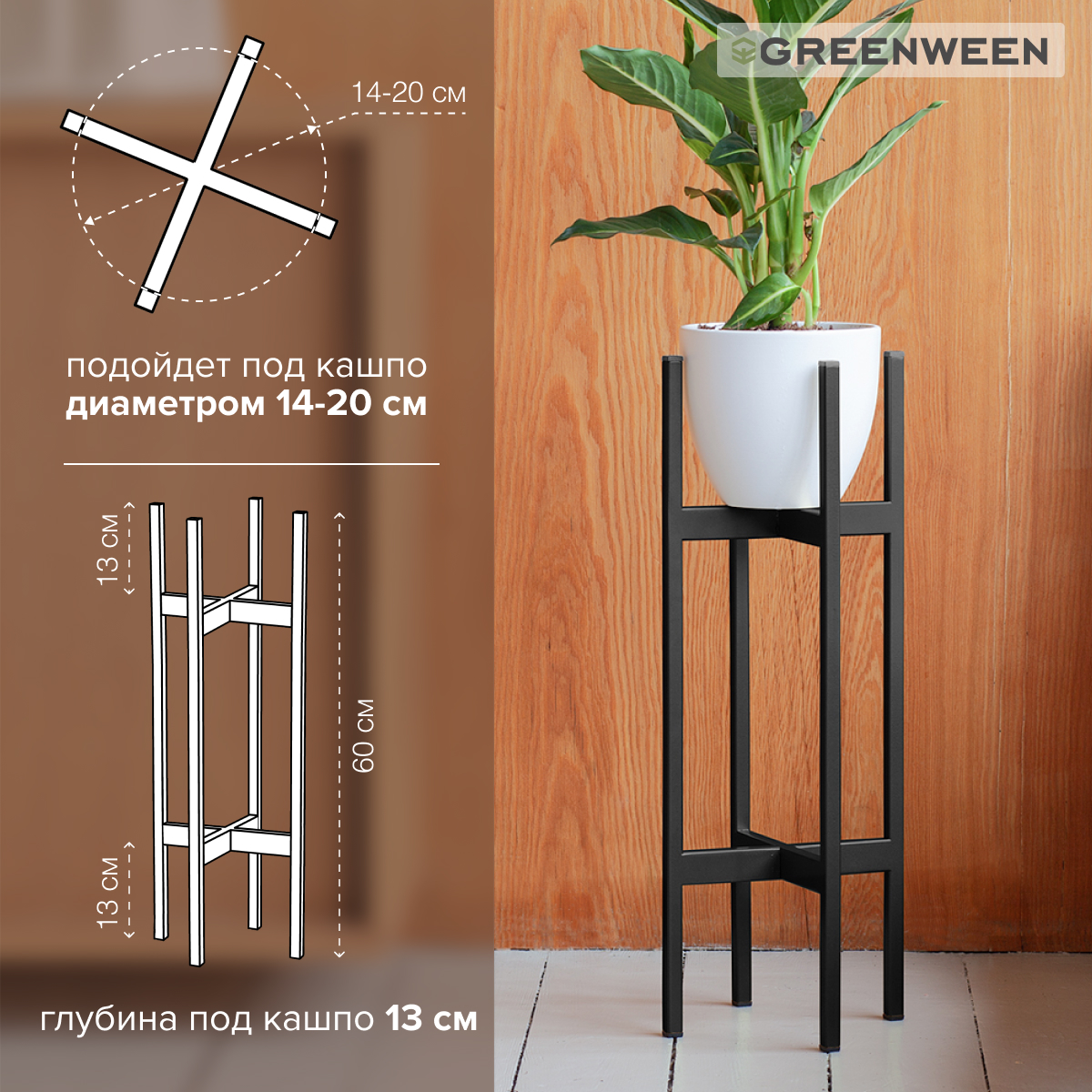 Подставка для цветов OXALIS 60 - стильное и функциональное решение для оформления вашего интерьера и создания зеленой зоны в квартире, загородном доме, офисе, ресторане, салоне и студии.