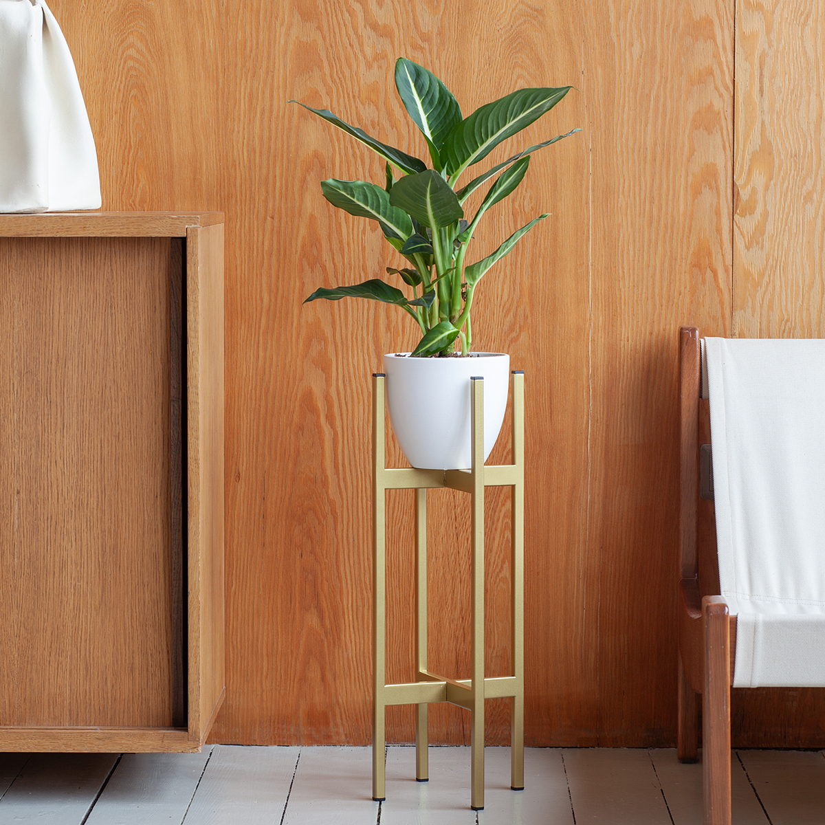 Золотая металлическая подставка для комнатных растений OXALIS 60 подойдет для оформления зеленой зоны в квартире, загородном доме, офисе, ресторане, студии.
