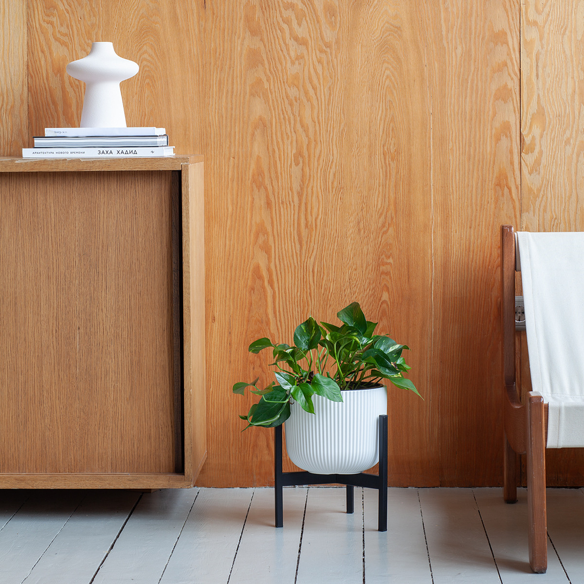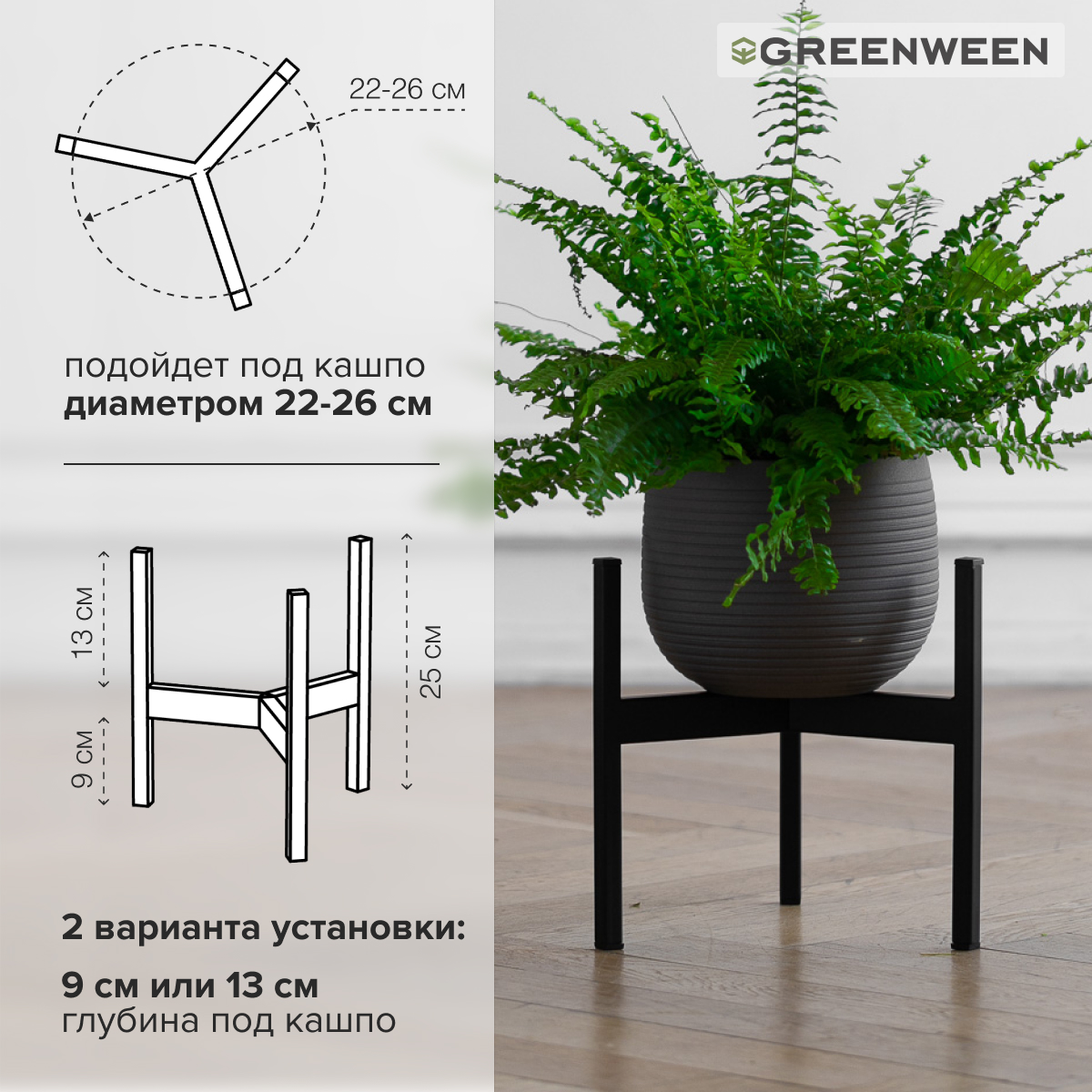Подставка под комнатные растения в черном цвете для любителей интерьера в стиле лофт, сканди и минимализм! Позволит разместить кашпо с растением на полу или другой поверхности: стол, комод и д.р. Выгодно подчеркивает красоту кашпо и комнатного растения, делая обстановку помещения более стильной. Пластиковые заглушки на ножках защитят любое покрытие поверхностей от царапин.