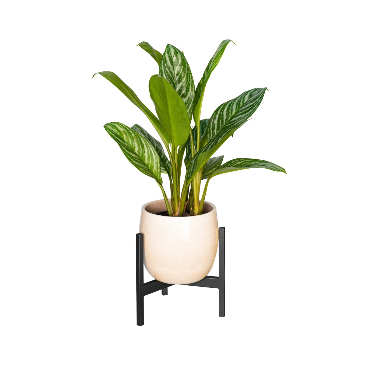 Удобное расположение ножек подставки делает её устойчивой, оставляет расстояние от стены до цветка, и не мешают проходу, так как находятся в одной плоскости. Цельнометаллическая конструкция и порошковая окраска гарантируют устойчивость и долговечность конструкции.