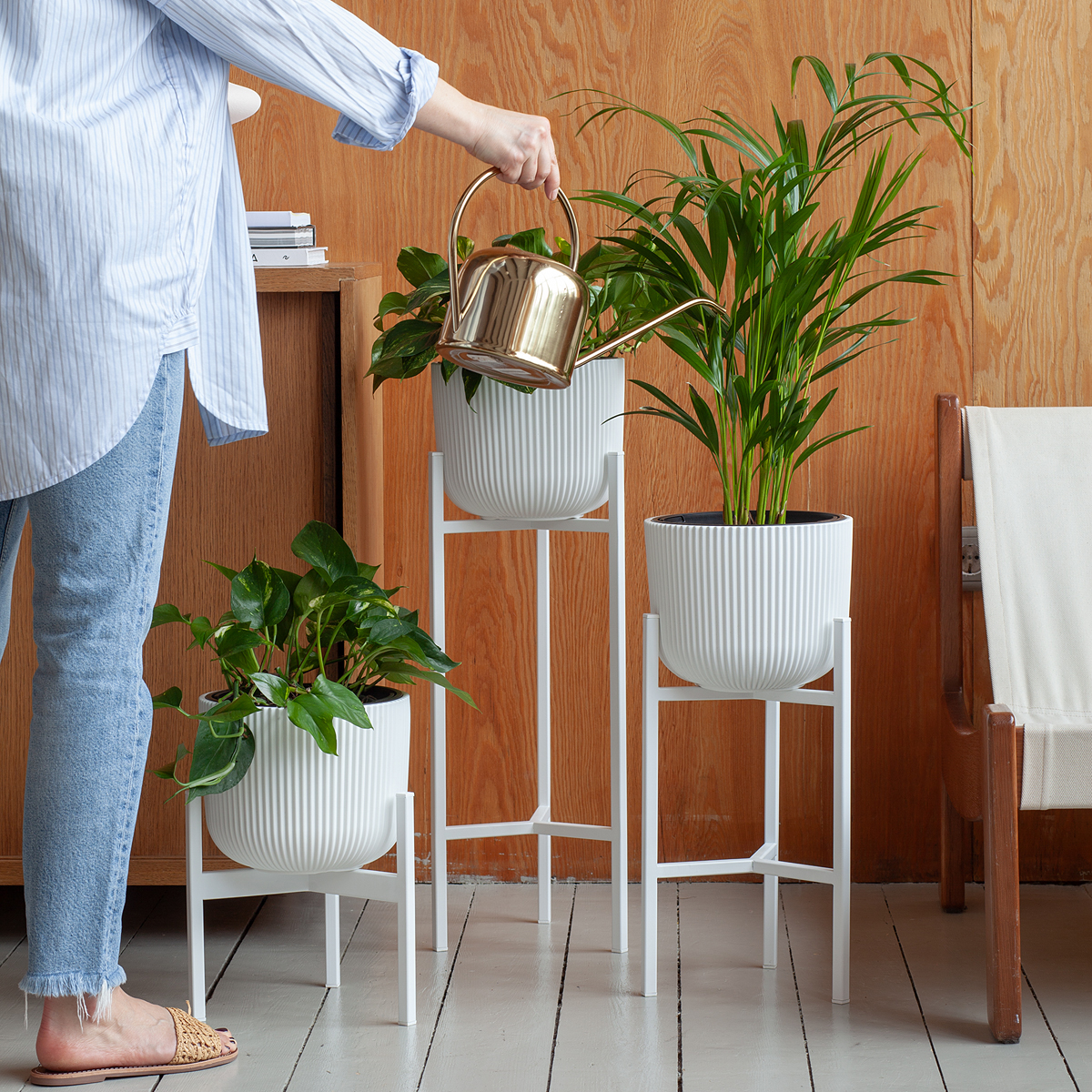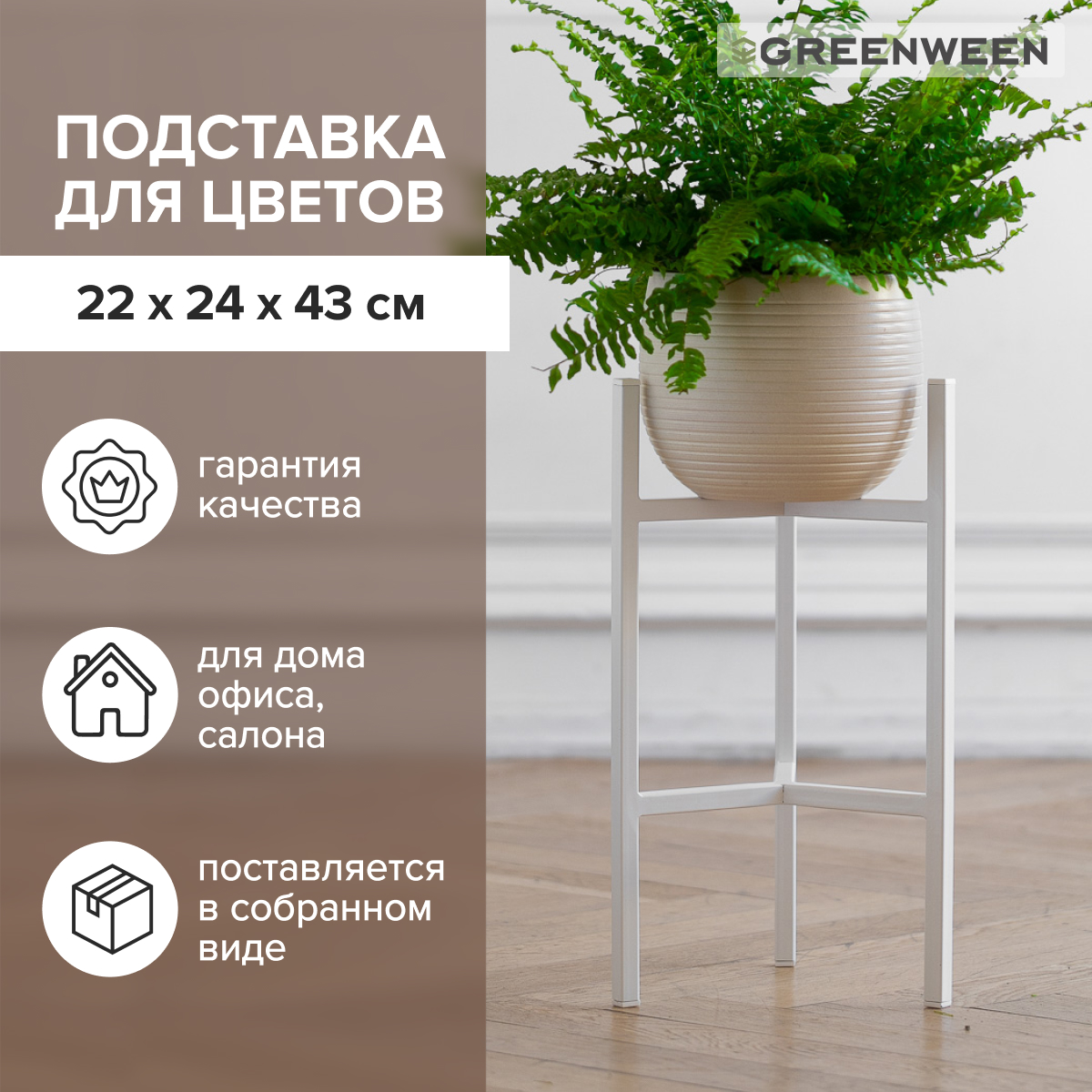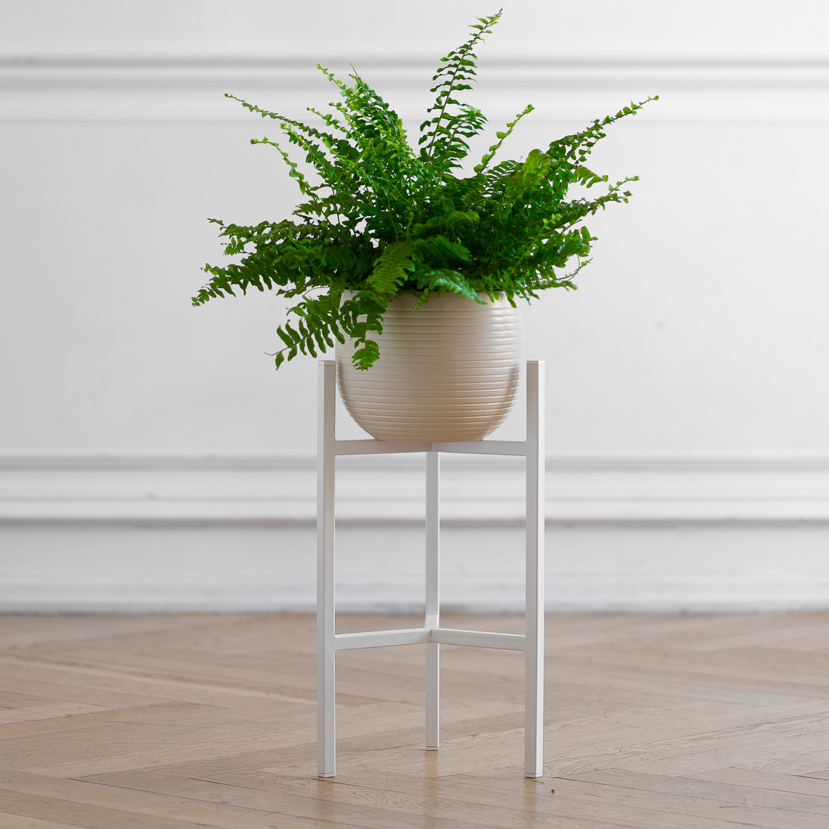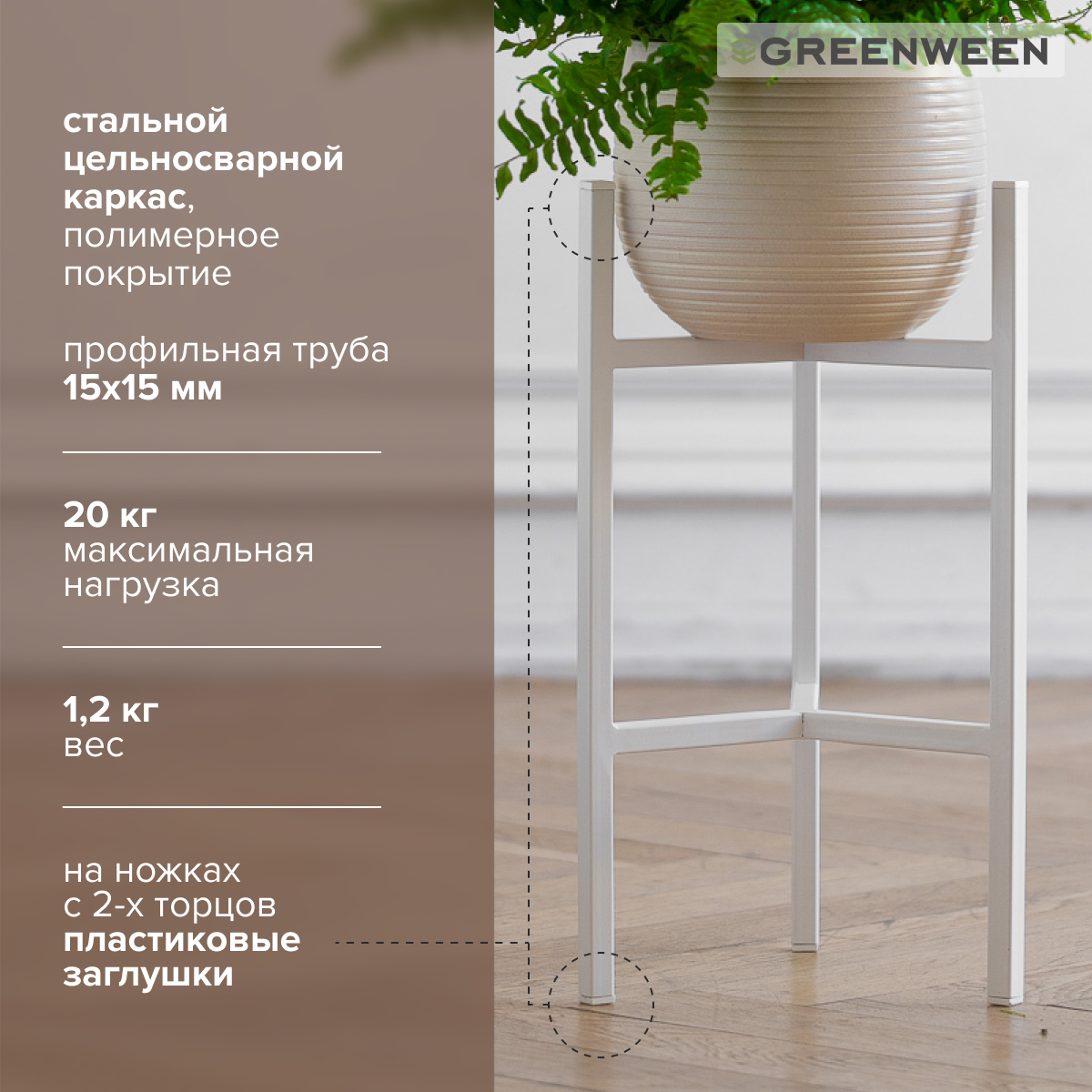 Подставка под комнатные растения в белом цвете для любителей интерьера в стиле лофт, сканди и минимализм! Подойдёт для размещения кашпо с крупным растением на полу. Белый цвет подставки выгодно подчеркивает красоту кашпо и комнатного растения, делая обстановку помещения более стильной. Пластиковые заглушки на ножках защитят пол от царапин.
